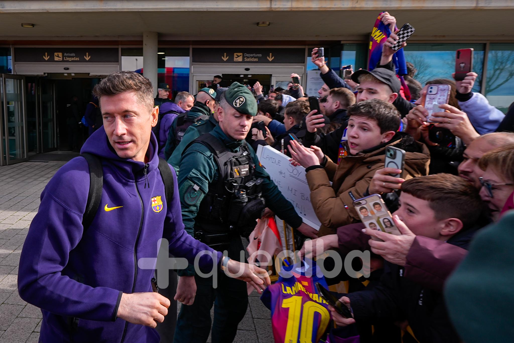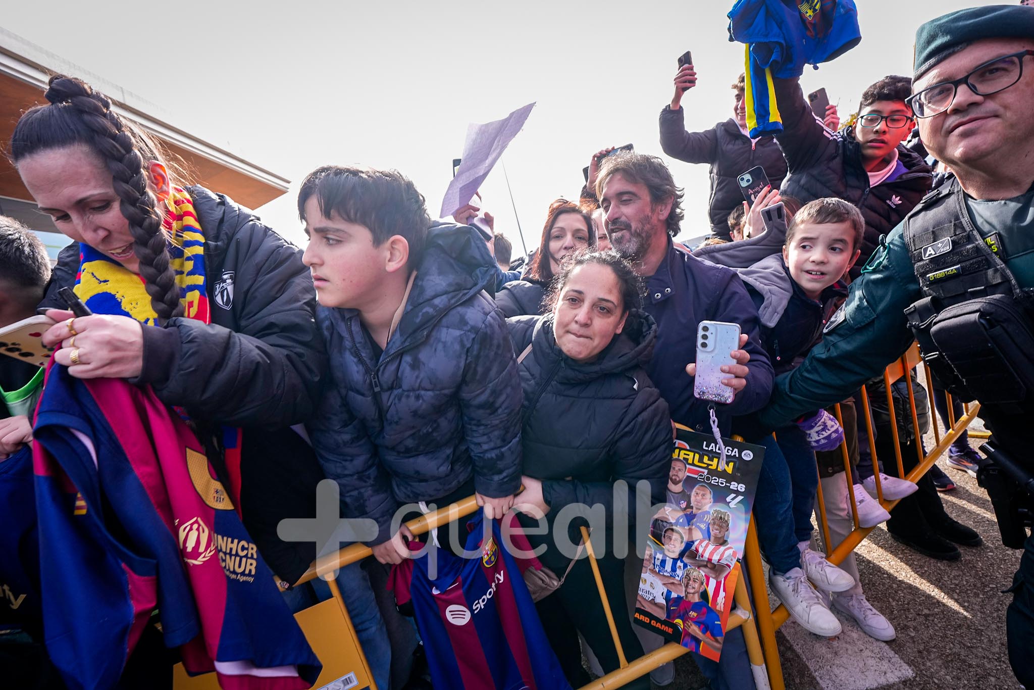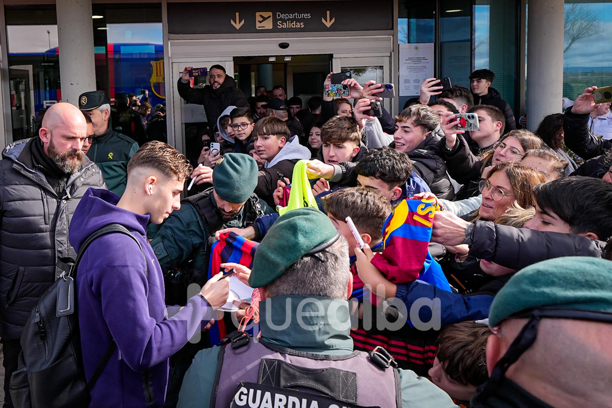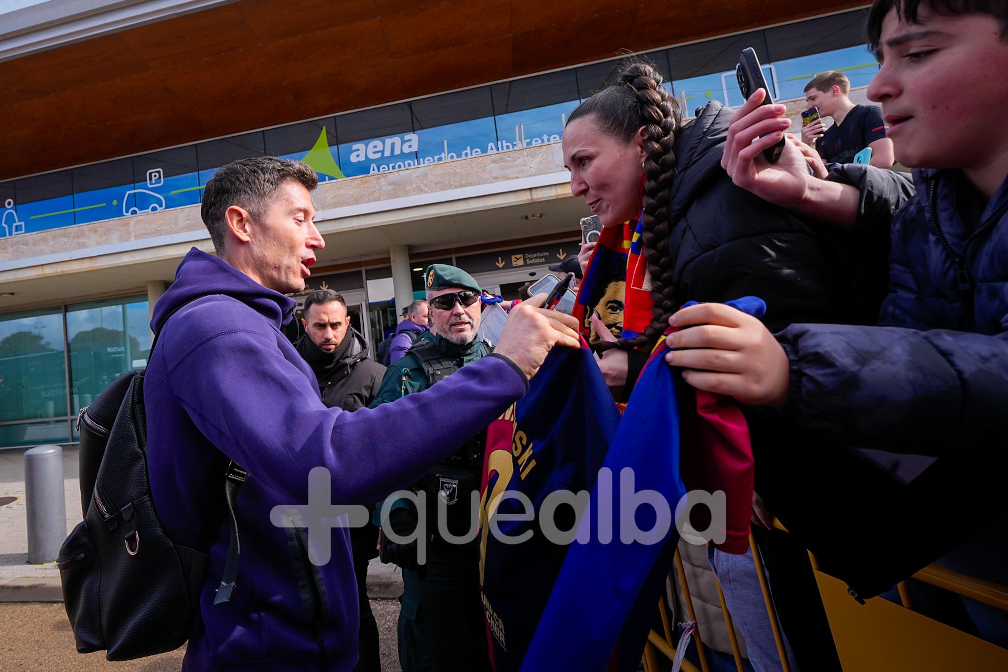 Cientos de aficionados esperaban al FC Barcelona a su llegada al aeropuerto de Albacete, donde Lewandowski y el entrenador blaugrana, Flick, han sido de los más accesible y Lamine Yamal era el único que salía al autobús sin hacer ningún gesto ni acercarse a los aficionados, cubierto con una gorra.