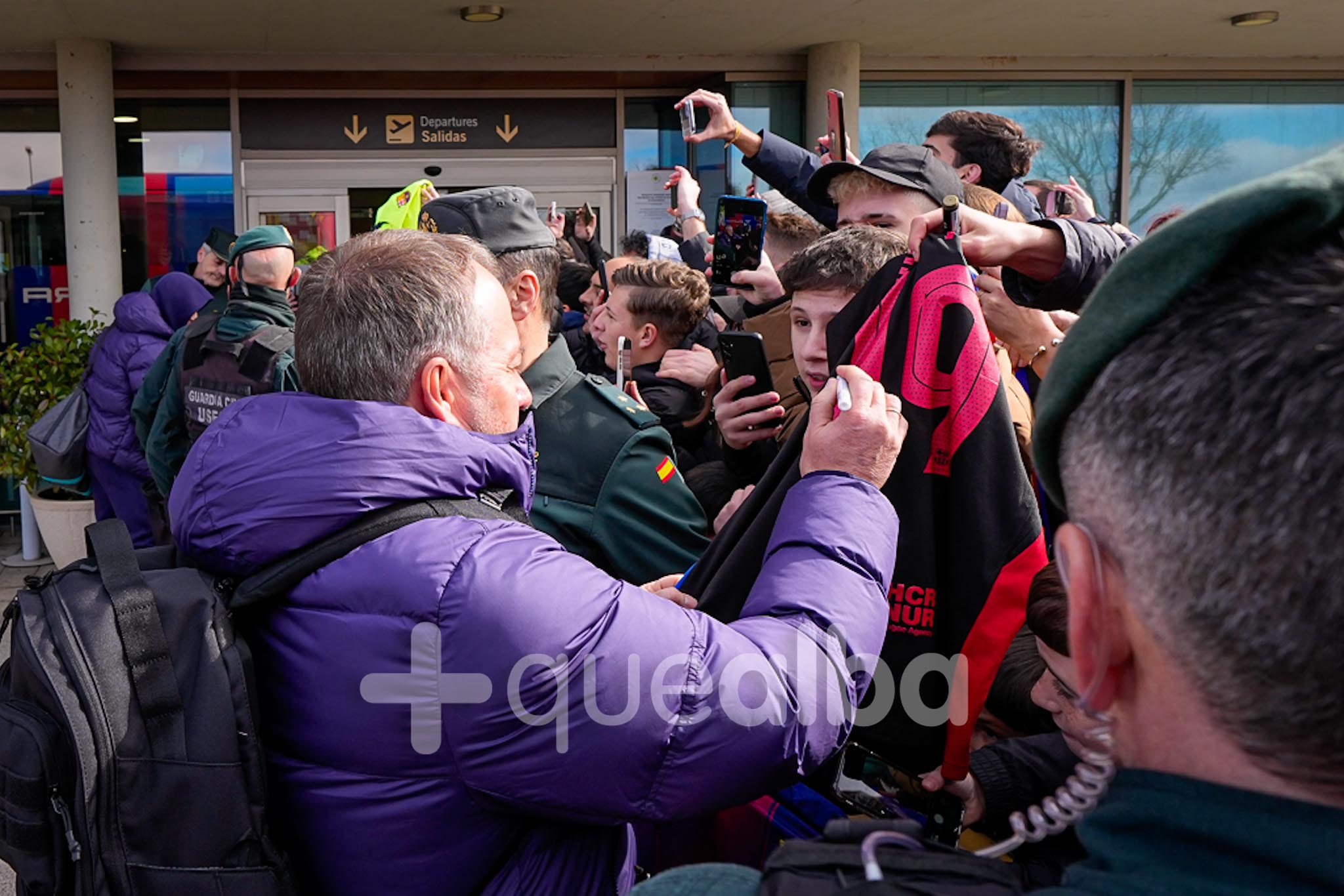 Los aficionados desplazados al aeropuerto llegaban con balones, camisetas o bufandas para tratar de conseguir la firma de sus ídolos, así como una fotografía con ellos.