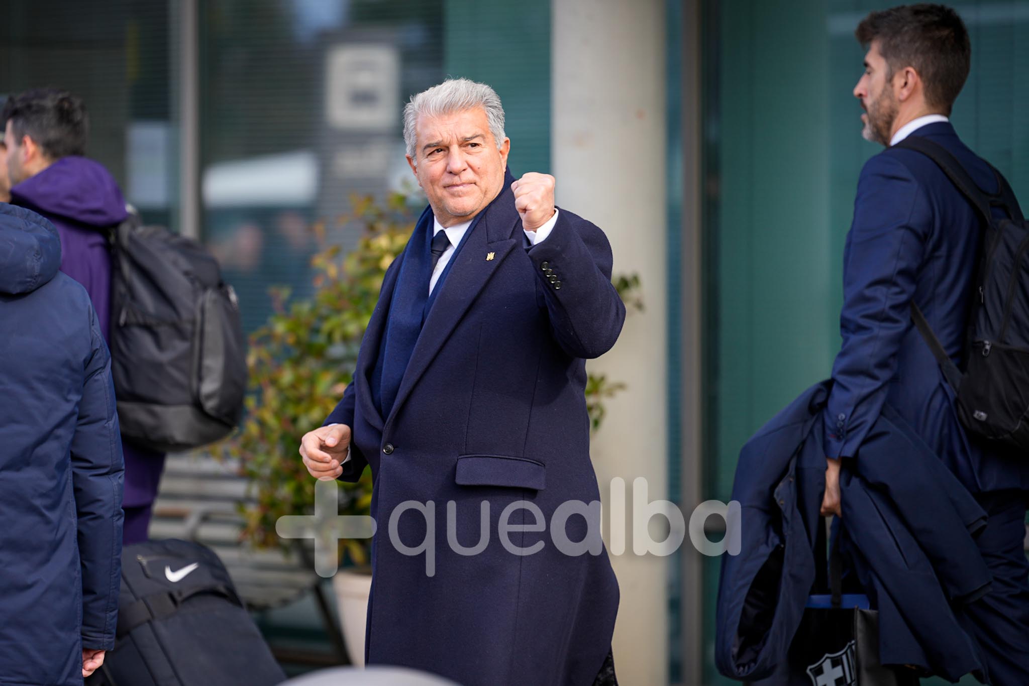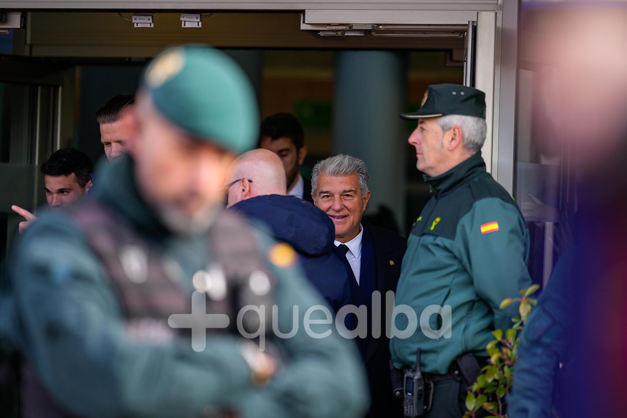 Gran presencia de la Guardia Civil para garantizar la seguridad de la expedición. Joan Laporta, presidente del Barcelona, también se acercaba para firmar autógrafos y tomarse fotografías con los aficionados.