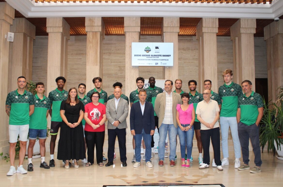 Manuel Serrano se ha pronunciado de este modo durante la presentación de la primera plantilla del Bueno Arenas Albacete Basket para la temporada 2024-2025 que ha tenido lugar esta mañana en el salón de Plenos, acompañado por el concejal de Deportes, Francisco Villaescusa, representantes de los diferentes grupos políticos del Ayuntamiento, el presidente del Albacete Basket, Jacinto Navarro, la plantilla al completo, el capitán del equipo, Álvaro Marín, el entrenador, David Varela, jugadores históricos y patrocinadores.