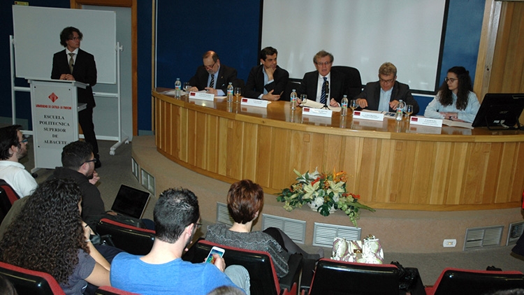 El rector estuvo acompañado durante el acto por el alcalde de Albacete, Javier Cuenca; el director de la Escuela de Ingenieros Industriales de Albacete, Valentín Miguel Eguía; la presidenta de la AERRAAITI, Ana López; el decano del Colegio Oficial de Graduados e Ingenieros Técnicos Industriales de Albacete (COGITIAB), Emilio Antonio López, y el delegado de Alumnos de la Escuela, Luis Martínez.
