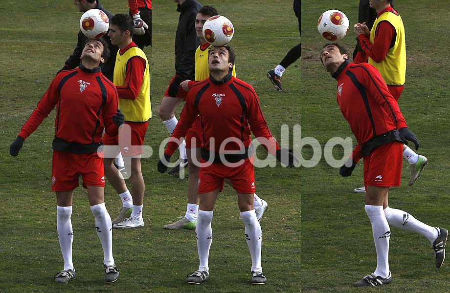 Más de 30 toques y de cabeza le vimos dar al ‘capi’, Noguerol, con el esférico, después de uno de los entrenamientos del Albacete Balompié.