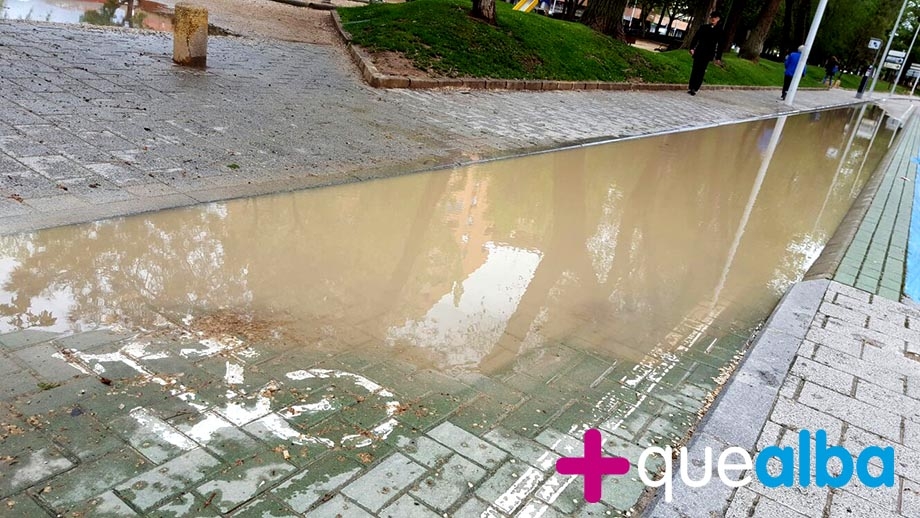 La intensa lluvia que a primera hora de esta tarde caía sobre la capital nos dejaba imágenes como esta del carril bici lleno de charcos. Salir a correr por el parque o ir en bici a dar un paseo es hoy más complicado por las inclemencias del tiempo.