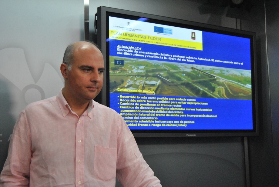 Esta medida, como ha explicado Díaz de Prado, se encuentra dentro del Plan Urbanitas-Feder obra cofinanciada en un 80% por el fondo europeo de desarrollo regional. Ha explicado que esta actuación contempla el enlace del carril bici urbano existente en la salida de la ciudad con el de la ribera del río Júcar, mediante la ejecución de una pasarela peatonal y ciclista sobre la autovía A-31, lo que permitirá la eliminación de uno de los puntos más peligrosos de salida de la ciudad en bicicleta.