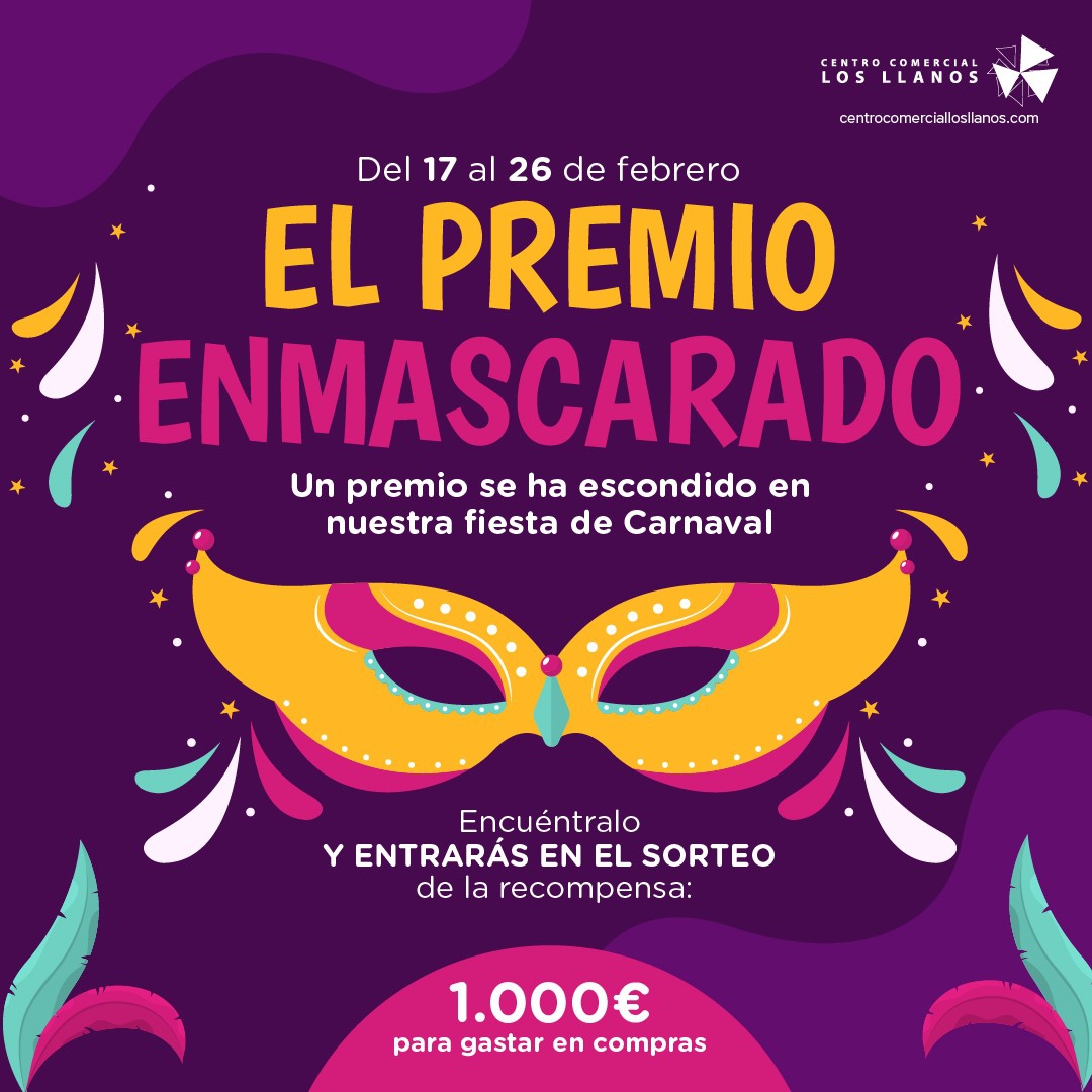 De este forma, Los Llanos activa desde mañana viernes 17 y hasta el do-mingo 26 de febrero la acción ‘El premio enmascarado’, en la que todas las personas que lo deseen podrán participar a través de su página web tratando de descubrir bajo qué máscara se esconde el premio.