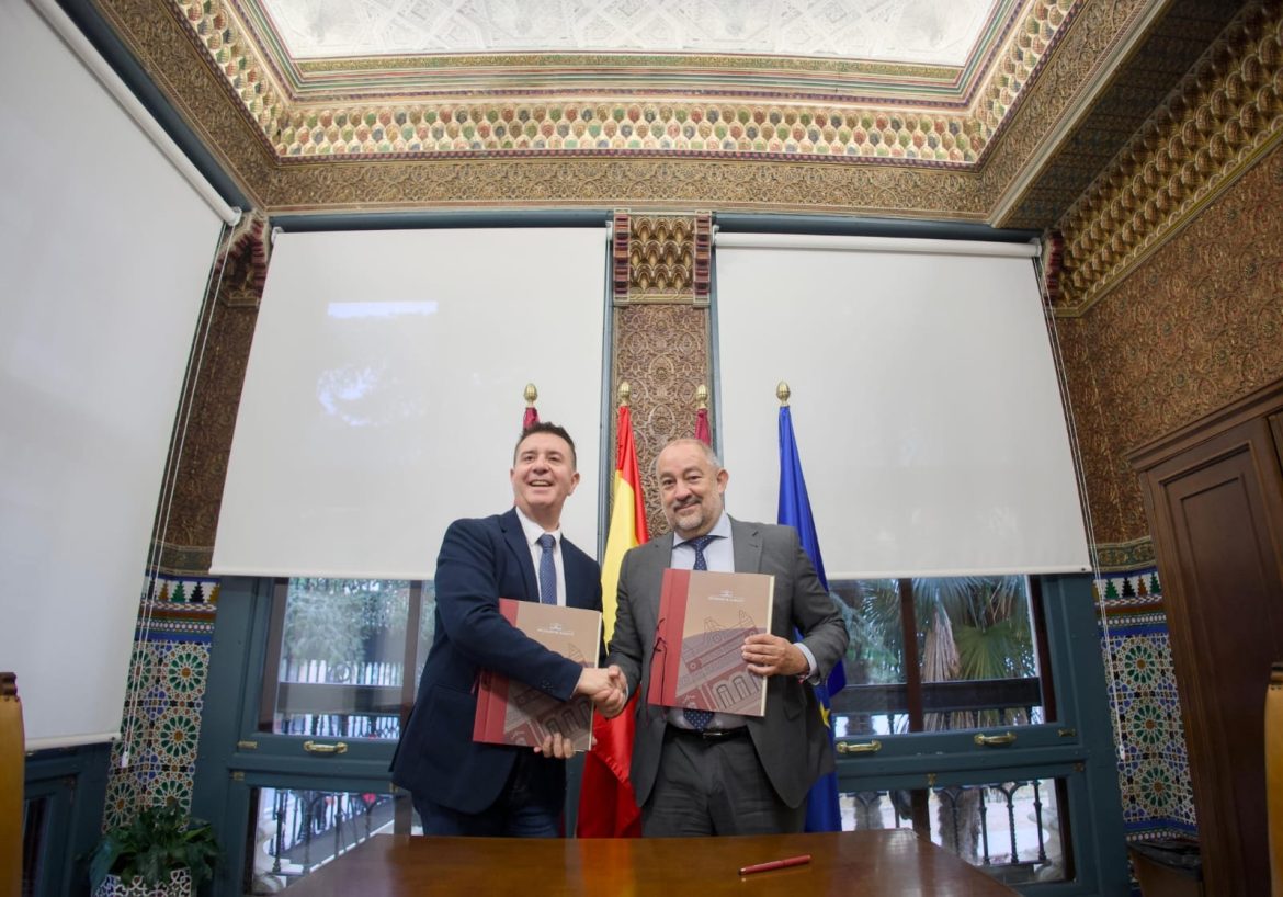 El presidente de la Diputación de Albacete, Santi Cabañero, y el rector de la Universidad de Castilla-La Mancha (UCLM), José Julián Garde, han firmado este miércoles el Convenio Marco de I+D entre la Diputación de Albacete y la UCLM: un acuerdo que busca fortalecer el compromiso mutuo con el desarrollo científico, social y económico en la provincia de Albacete.