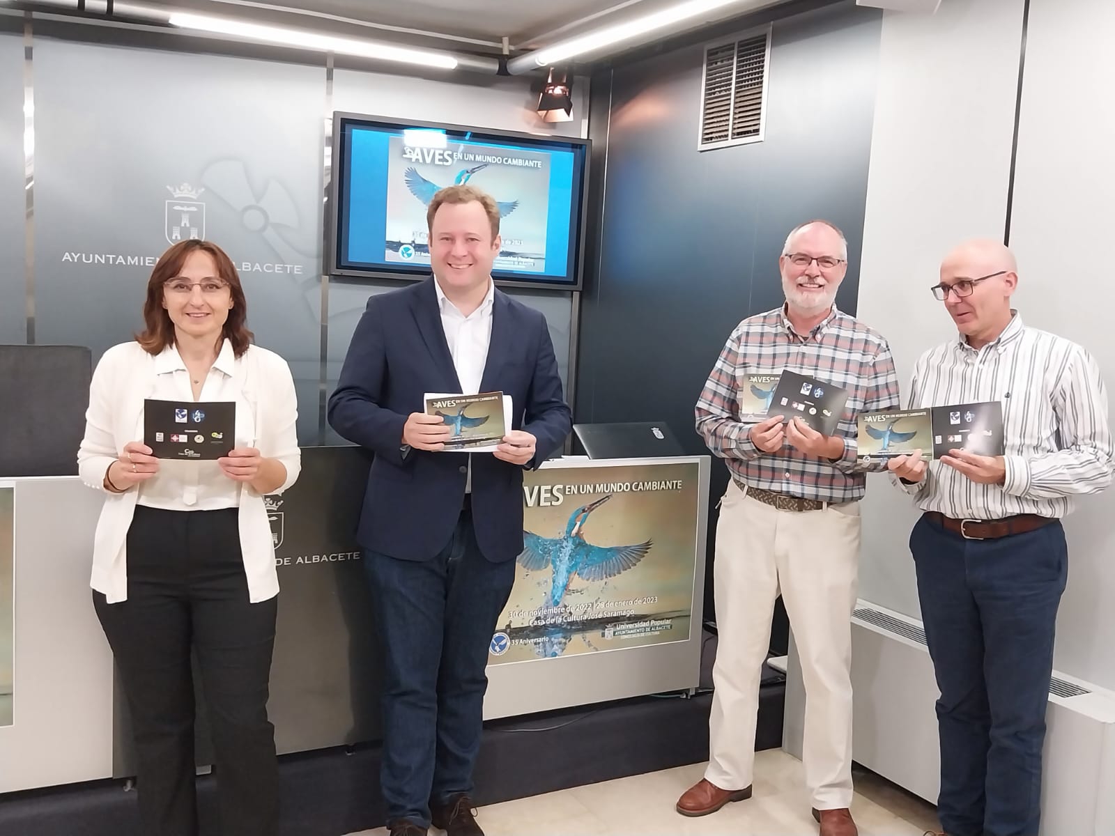 Exposiciones, conferencias, visitas y una masterclass de fotografía conforman, entre otras actividades, el programa Aves en un mundo cambiante que desarrollarán la Universidad Popular (UP) de Albacete, la Sociedad Albacetense de Ornitología (SAO) y el Ayuntamiento, de forma conjunta, del 30 de noviembre al 28 de enero. La programación que integra este interesante ciclo ha sido presentada esta mañana por el vicealcalde y concejal de cultura, Vicente Casañ, junto al secretario de la SAO, Siro González, la directora de la Universidad Popular, María José Gimeno, y el profesor del Aula de la Naturaleza de la UP, Juan Picazo.