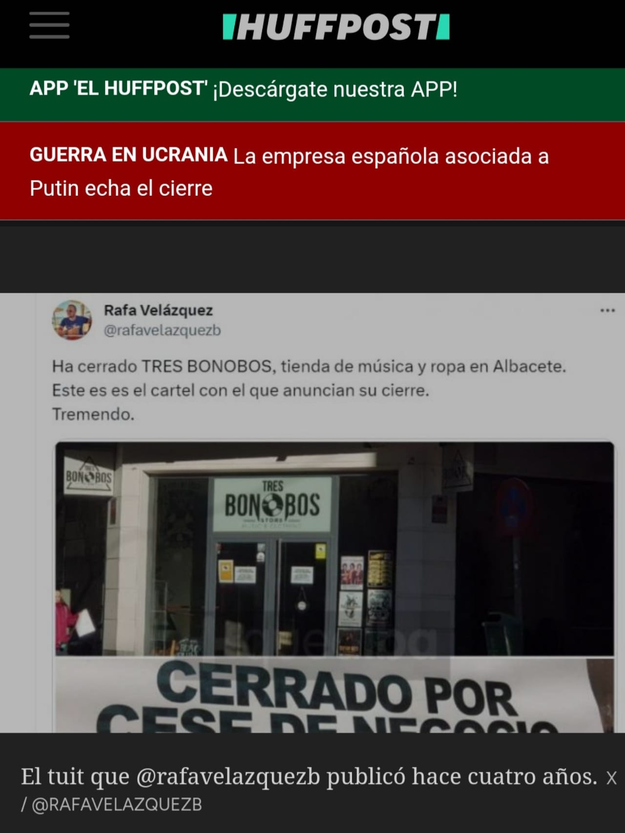 El 7 de enero de 2020, con un mal regalo de Reyes para sus propietarios, en Masquealba nos hacíamos eco del cierre de la tienda Tres Bonobos. La noticia se hizo viral y varios medios se harían después eco de ella. Lo curioso de la misma era el cartel que habían colocado para anunciar su cierre.