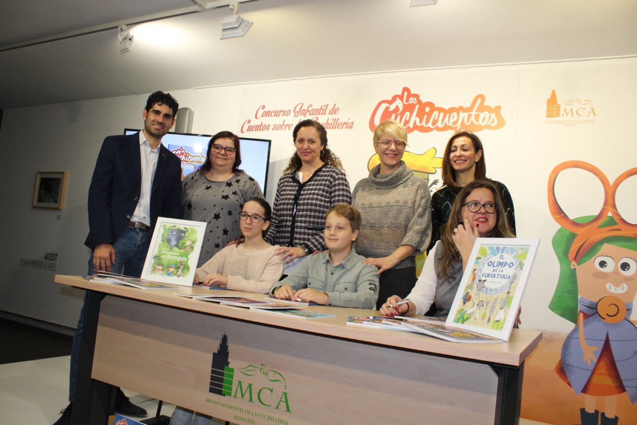 La historia de un trozo de acera que dormía en la cueva del Niño, en Ayna, y el relato de un singular Olimpo habitado por cuchillos, cucharas y tenedores, protagonizan el quinto volumen de Los Cuchicuentos, una colección de publicaciones infantiles, editada por el Museo Municipal de la Cuchillería, y que hoy ha sido presentado en su sala de exposiciones temporales.