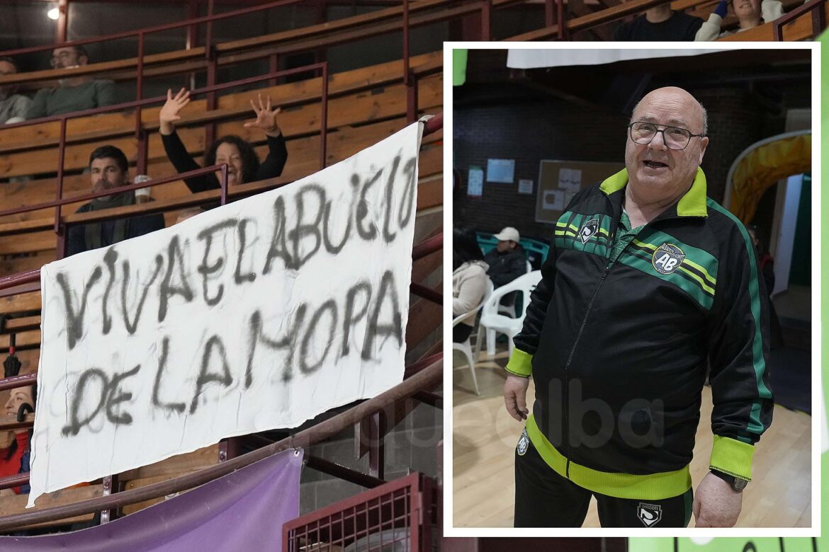 Juan José García Sánchez, más conocido como ‘Polo’, es el crack del «abuelo de la mopa» en el Pabellón del Parque. Siempre pendiente de que todo esté perfecto, hoy se ha llevado la sorpresa de encontrarse con una pancarta en su honor en la grada.