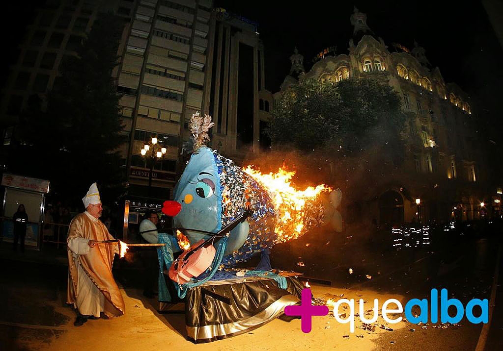 Los Carnavales de Albacete 2016 han terminado este Miércoles de Ceniza con el entierro de la Sardina. Como es habitual, el cortejo fúnebre se ha concentrado en la Plaza Gabriel Lodares para salir después hasta la Plaza del Altozano, recorriendo el centro de la ciudad. Unas 500 personas han acompañado a la sardina en una noche de mucho viento.