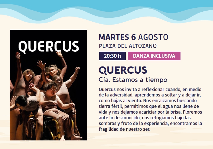 Mañana martes, 6 de agosto, a las 20:30 horas, tendrá lugar en la Plaza del Altozano una de las más de 80 actividades que el Ayuntamiento de Albacete ha organizado dentro del Verano Cultural. En esta ocasión, los espectadores podrán ver el espectáculo de danza inclusiva “Quercus” de la compañía “Estamos a tiempo”.