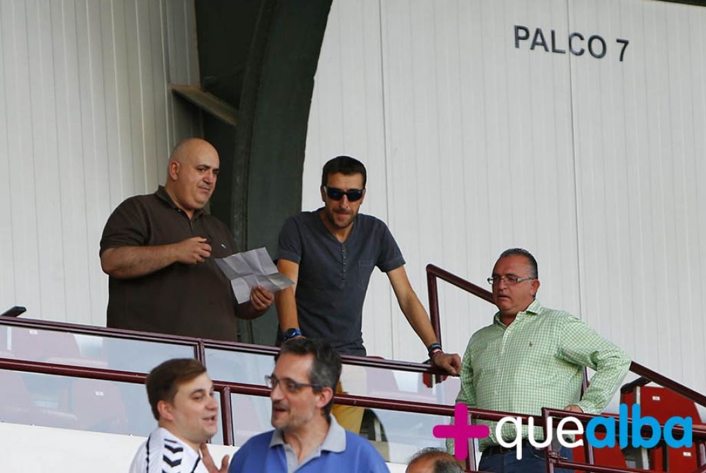 En el amistoso del Albacete Balompié- Valencia Mestalla hemos visto por el palco a los periodistas José Luis Royo  y Vicente Albujer, por cierto que el redactor de La Tribuna era de los pocos que estaban trabajando y el de Radio Chinchilla no ha querido perderse la ocasión de ir viendo al Alba en pretemporada. Pero no se preocupen que la voz más sexy de la radio volverá pronto para narrarles cada partido de los blancos. Les hemos visto hablando con el portavoz del Consejo de Administración del Alba, Luis Castelo. El Valencia Mestalla venía con muchos famosos como Curro Torres, el entrenador, que fue lateral derecho del Valencia y de la Selección; o el mítico Camarasa, que es el delegado del club o Juan Sánchez, ahora en la directiva. No se ha perdido el partido Pablo Gil, ahora sin equipo, al que hemos con Juanky. Y el presidente del Alba, José Miguel Garrido, también ha venido al amistoso.