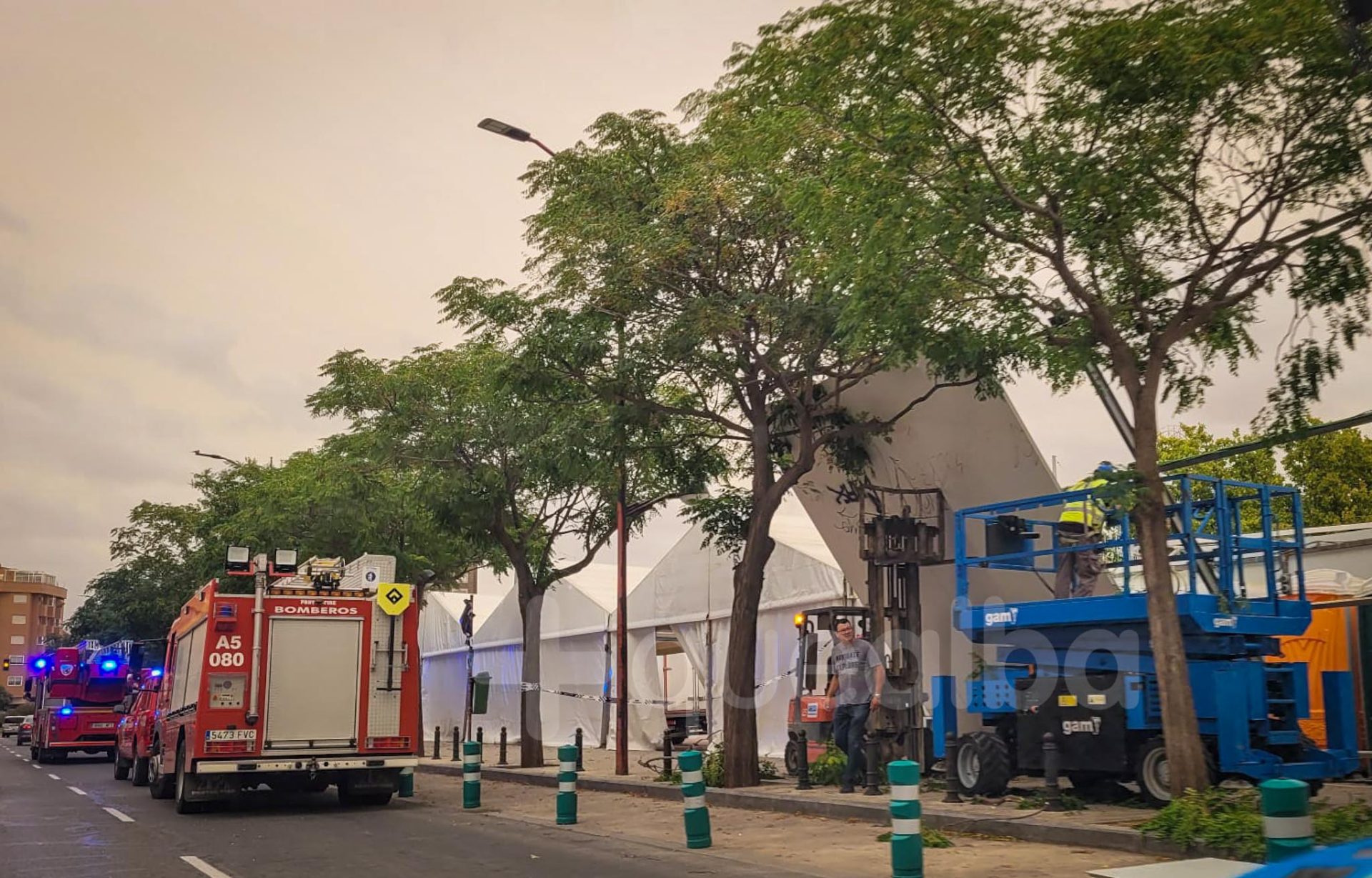 Alrededor de las seis de la tarde los Bomberos tenían que intervenir en las vallas de insonorización de Los Redondeles de la Feria.