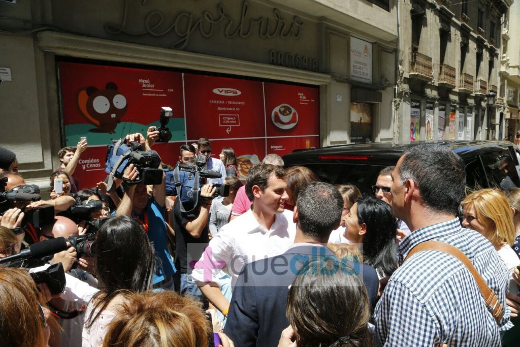 El líder de Ciudadanos, Albert Rivera, inicia su paseo por el centro de Albacete ‘cortando’ la calle Ancha con tanto gentío.