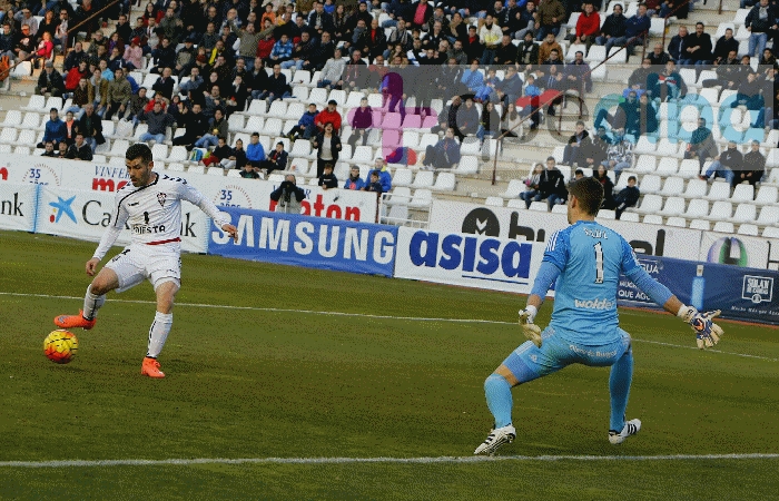 Víctor Curto hacía el 1-0 para el Albacete Balompié en el 35, a pase de Portu, jugador que se fue de todos para llegar hasta el área y ponerle el gol en bandeja a Curto.