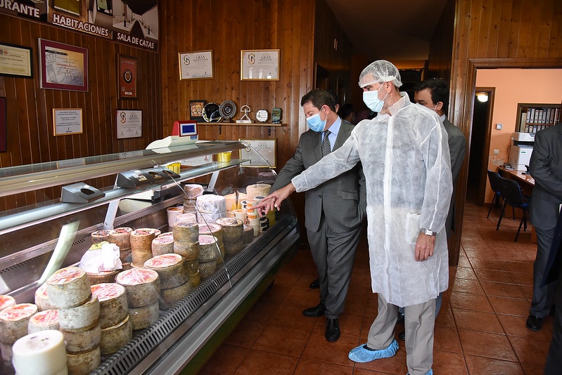Acompañado por el consejero de Agricultura, Agua y Desarrollo Rural, Francisco Martínez Arroyo y el de Sanidad, Jesús Fernández, el jefe el Ejecutivo castellanomanchego ha visitado hoy La Casota, una de las 67 queserías que produce queso con denominación de origen manchego, uno de los productos punta de lanza de la comunidad. Recibido por su propietario, José Araque Carrascosa, y el alcalde, Luis Díaz-Cacho Campillo, han conocido la labor que se hace en esta empresa familiar recorriendo la planta de fabricación, las cámaras de maduración y la tienda. Con 2.000 cabezas de oveja de pura raza manchega y 10.000 cabezas más también de raza manchega, pertenecientes a los términos de La Solana, Membrilla, Manzanares, Argamasilla de Alba y Alhambra, La Casota transforma el producto en el lugar donde se ubica, generando empleo en el medio rural.