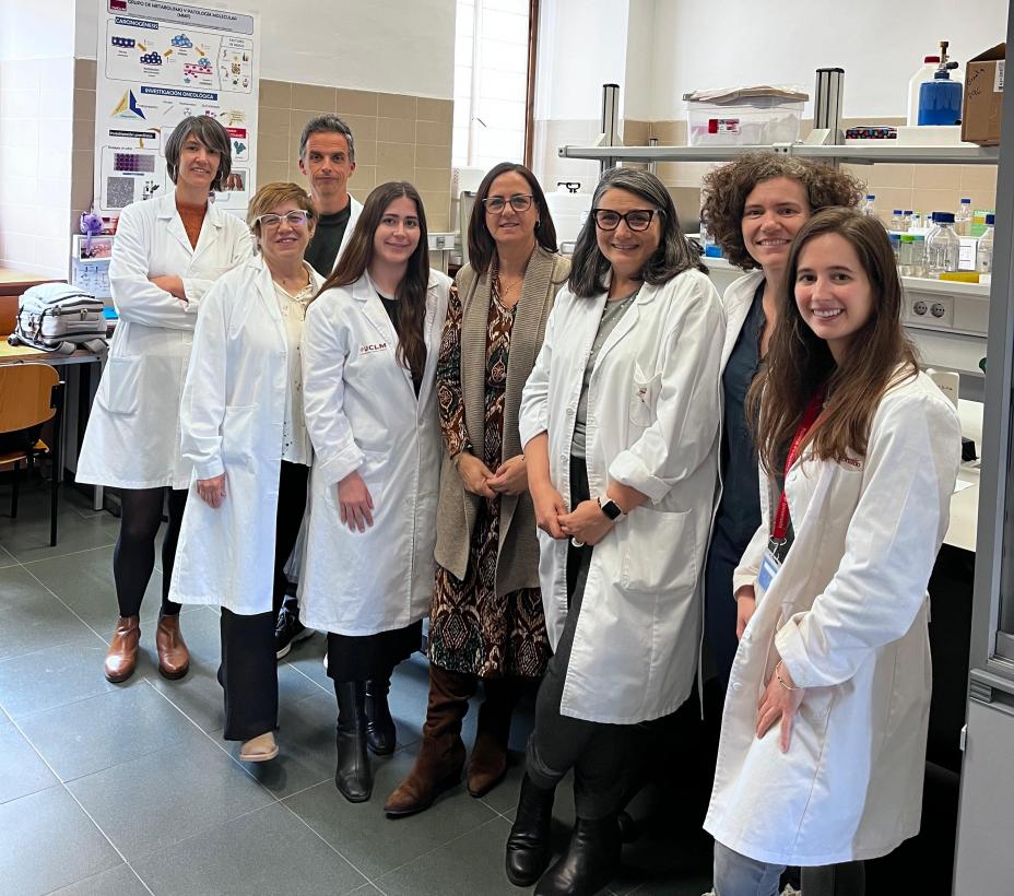 La directora de la Agencia de Investigación e Innovación, Charo Serrano, ha visitado este proyecto liderado por Raúl Calero y que cuenta con Virginia Pérez, graduada en Bioquímica por la UCLM, contratada con cargo a las ayudas para la formación de personal investigador en centros públicos de investigación y en empresas, en el marco de la retención y el retorno del talento, cofinanciadas por la Junta de Comunidades de Castilla-La Mancha y por el Fondo Social Europeo Plus (FSE+).