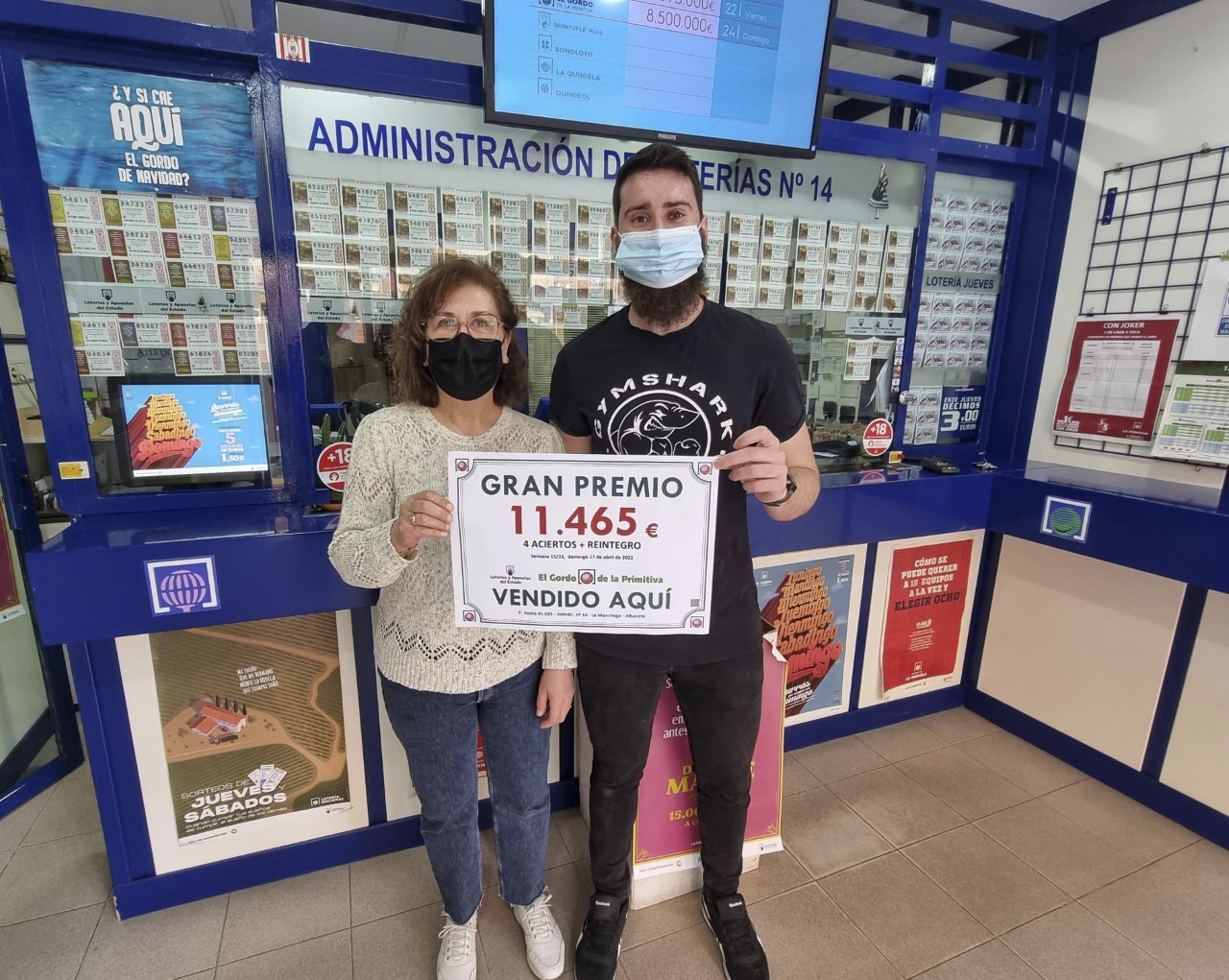 En el sorteo del Gordo de la Primitiva de ayer domingo 17 de abril de 2.022, han aparecido un total de 16 boletos premiados de Tercera Categoría (4 + 1), siendo DOS de ellos validados en Albacete capital, cuyo importe ha sido de 11.464,95 €.