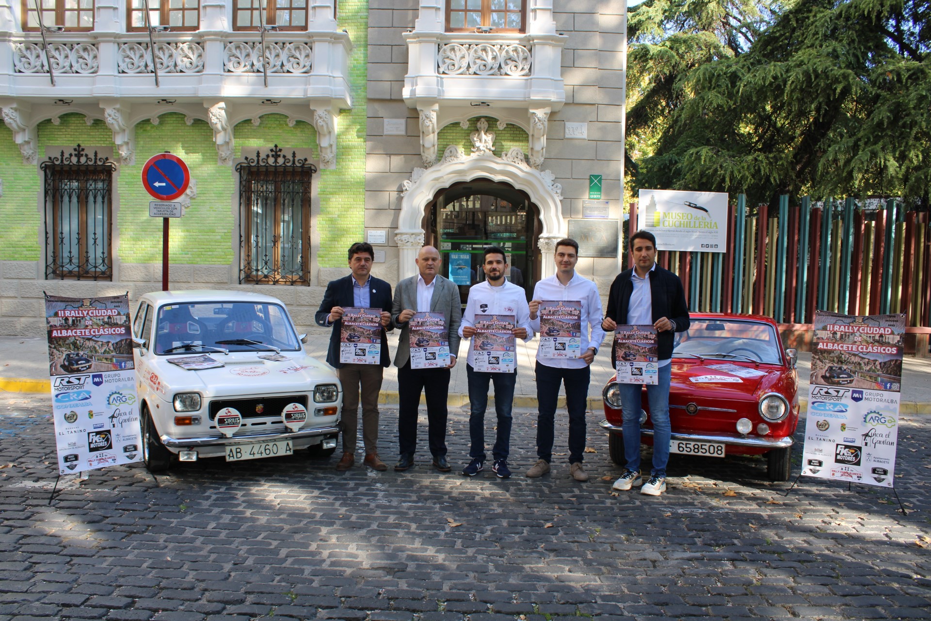 El concejal de Deportes Francisco Villaescusa y el primer teniente de alcalde, Francisco Navarro, han presentado junto al diputado de Deportes Daniel Sancha el II Rally Ciudad de Albacete Clásicos. A la presentación, desarrollada en la explanada frente al Museo de la Cuchillería, asistió también, por parte de la organización del Rally, Francisco Javier Corredor.