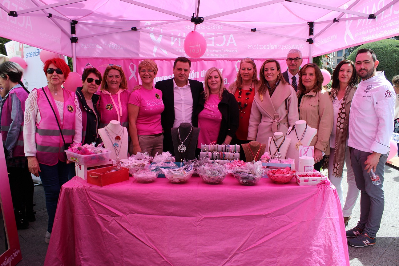 El alcalde de Albacete, Manuel Serrano, ha participado en la III Concentración de cortadores de jamón que se ha desarrollado en la Plaza del Altozano, organizada por la Asociación Costuras en la Piel, ACEPAIN, poniendo en valor la importancia que tiene la investigación oncológica para afrontar con seriedad la lucha contra el cáncer.