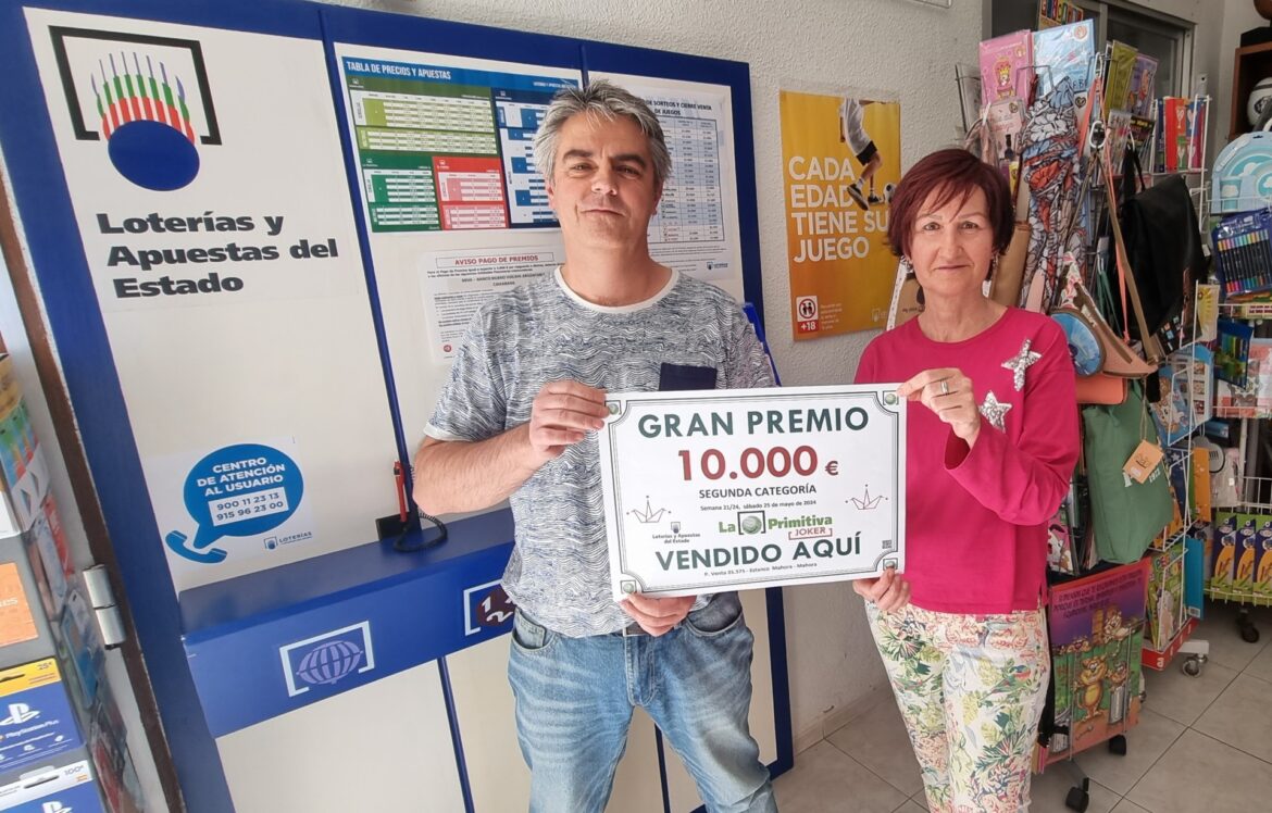 En el Sorteo 63 del Joker de la Lotería Primitiva celebrado en la noche del Sábado 25 de mayo del 2024, se ha repartido un premio de 2ª Categoría del JOKER con un importe de 10.000 Euros. Dicho Premio ha sido validado en el Punto de Venta Mixto 01.575 – Estanco situado en Mahora, en la calle Glorieta N.º 11. Destacamos que este establecimiento ya ha entregado varios premios en el resto de los juegos.