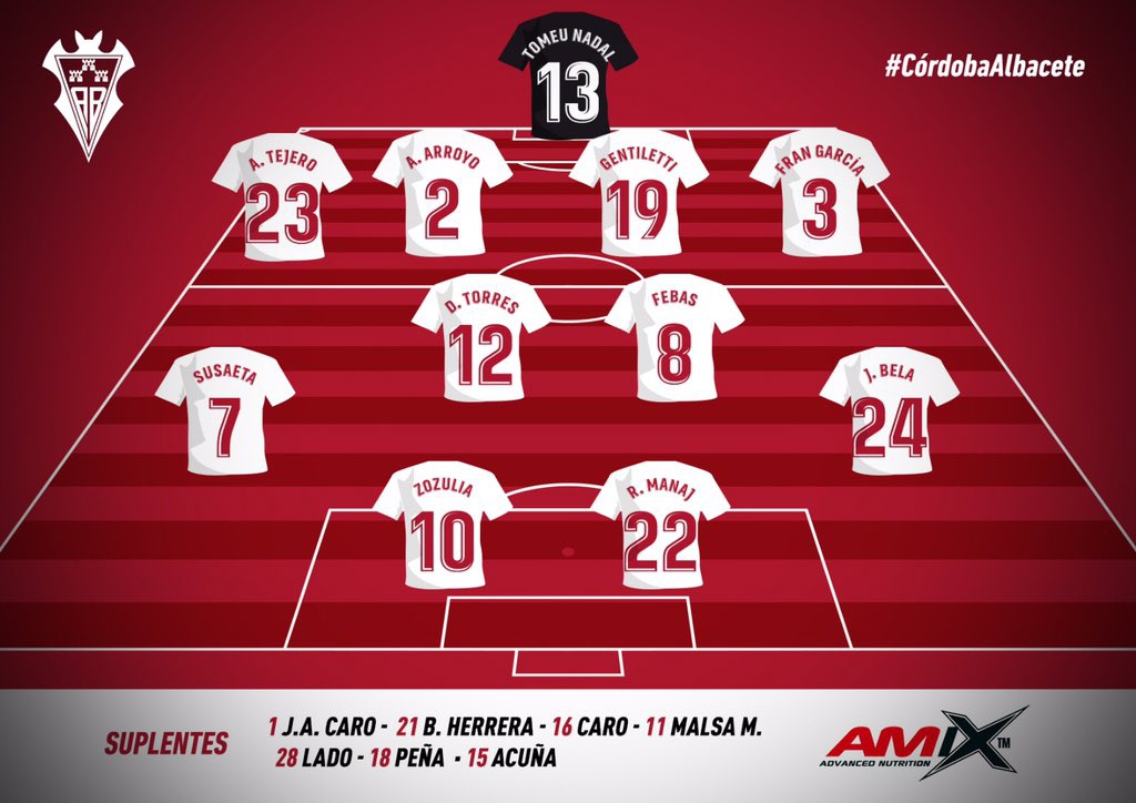 Este es el once con el que los de Luis Miguel Ramis tratarán de lograr la victoria en Córdoba.