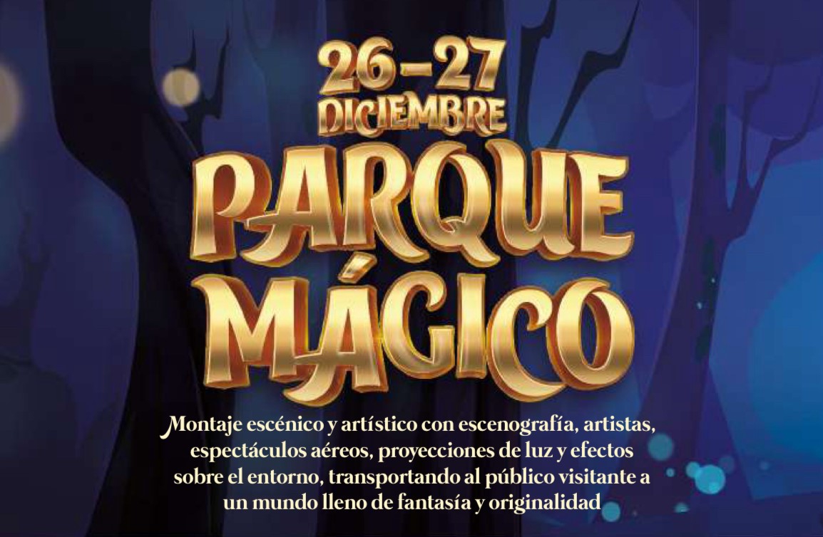 El Parque Mágico abre sus puertas los próximos días 26 y 27 de diciembre, ofreciendo un montaje escénico y artístico con escenografía, artistas, espectáculos aéreos, proyecciones de luz y efectos sobre el entorno, transportando así al público visitante a un mundo lleno de fantasía y originalidad.