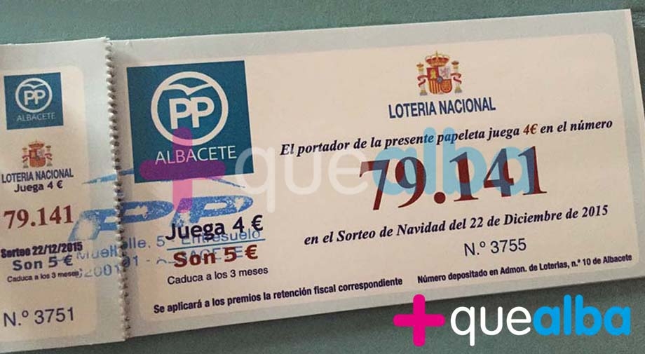 El PP de Albacete jugaba al 79.141, el posterior al Gordo y se lleva un buen pellizco, con 420 euros de premio por cada papeleta de 2.40 euros jugados, 2.100 euros al décimo.