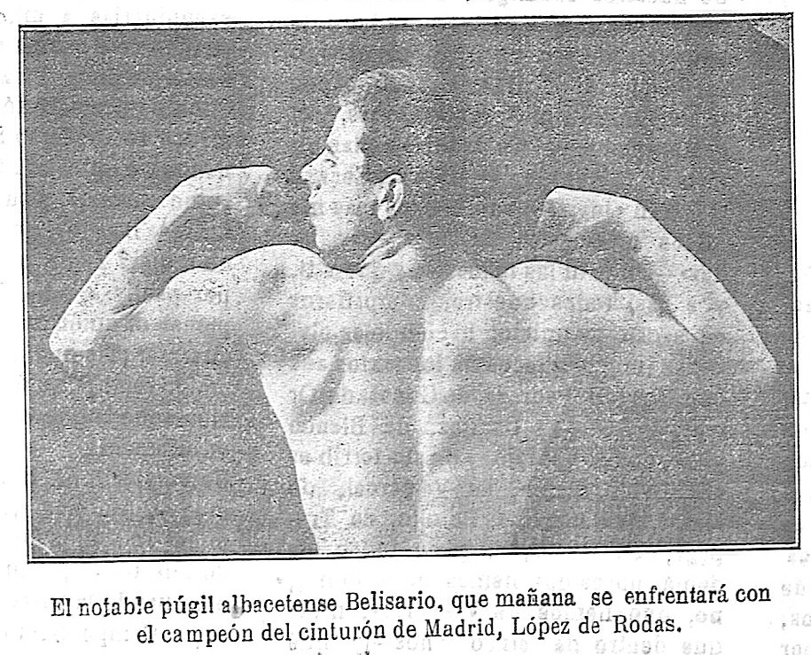 Un deporte aún joven en España que despertaba la curiosidad de propios y extraños. Aunque es verdad que el hombre se ha dado de tortas desde la prehistoria, no fue hasta mediados del siglo XIX cuando John Sholto Douglas, IX Marqués de Queensberry, estableció unas normas con las que golpearse con caballerosidad. Y a finales de ese siglo, comenzó a practicarse el boxeo en Barcelona. Aunque hasta varias décadas después no se popularizó gracias a nombres como el propio Uzcudun o Antonio Ruiz, Luis Rayo, Víctor Ferrand, Carlos Flix o Ignacio Ara. Y en esta ola de afición, surgieron en Albacete los primeros púgiles: Charles, López, Ruiz, Motos, García, Juan Sinsangre, Rubio y Belisario que, quizá, no fue formalmente el primero, aunque sí se convertiría en el primer albaceteño que boxeó de manera profesional. O como le describiría el mítico Olime al final de su vida: “Belisario, el mejor boxeador albacetense de todos los tiempos”.