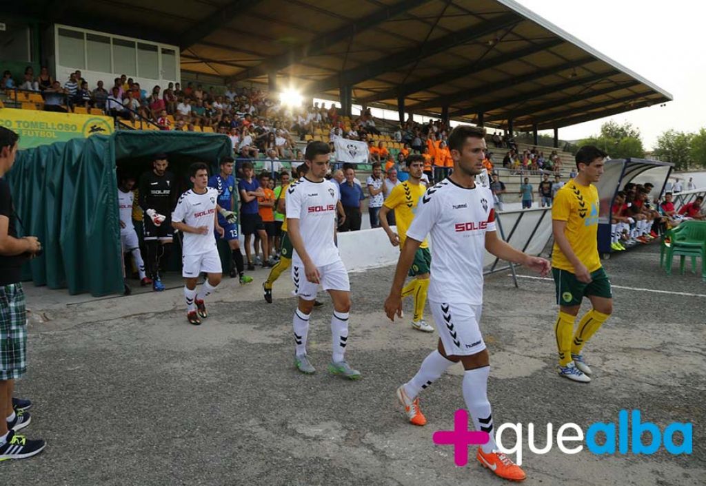 La ocasión más clara de la primera mitad para el Tomelloso llegó en el 21 y en el Alba creó peligro también Alfon, que lo intentó de Chilena, al filo del descanso, pero no logró anotar.