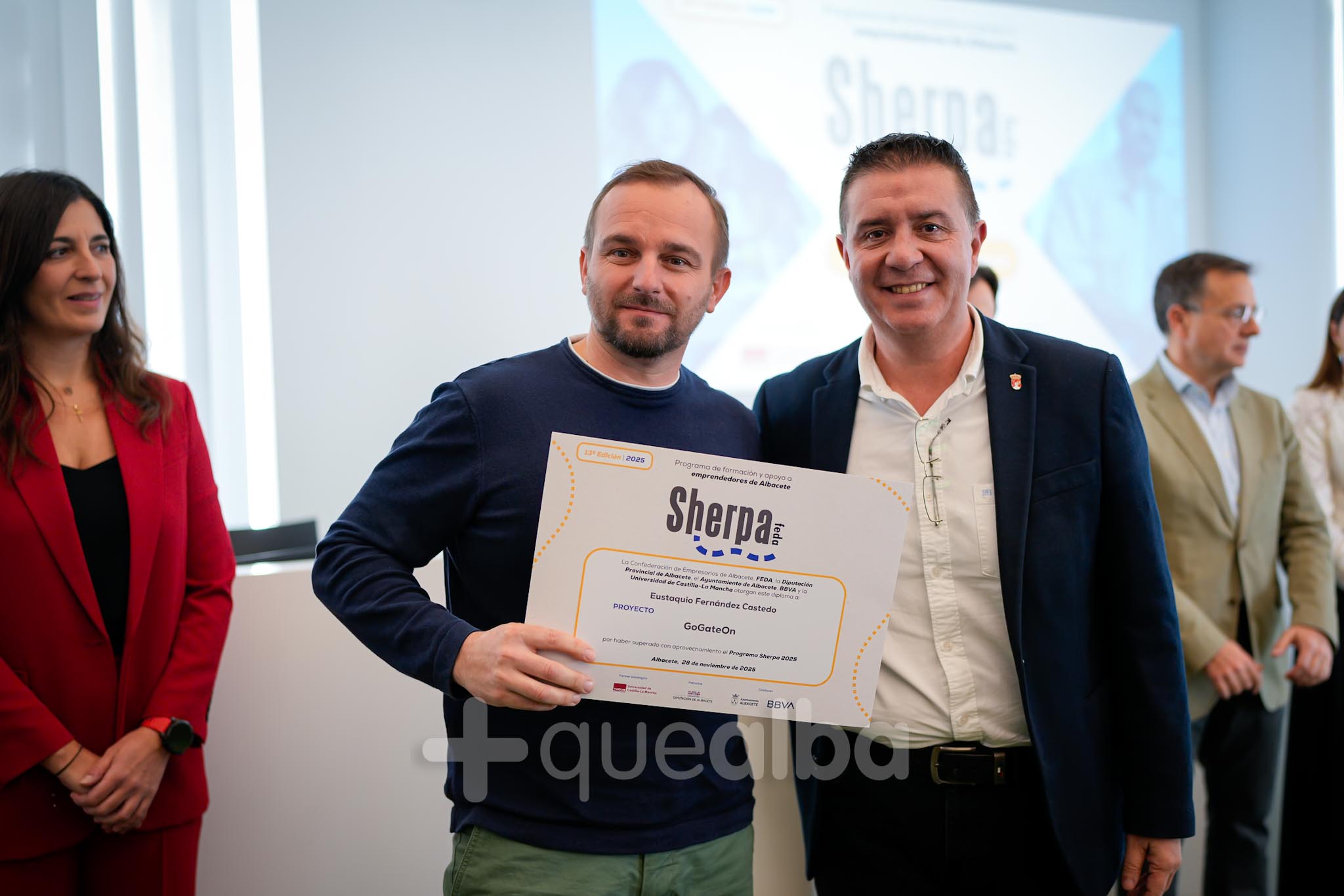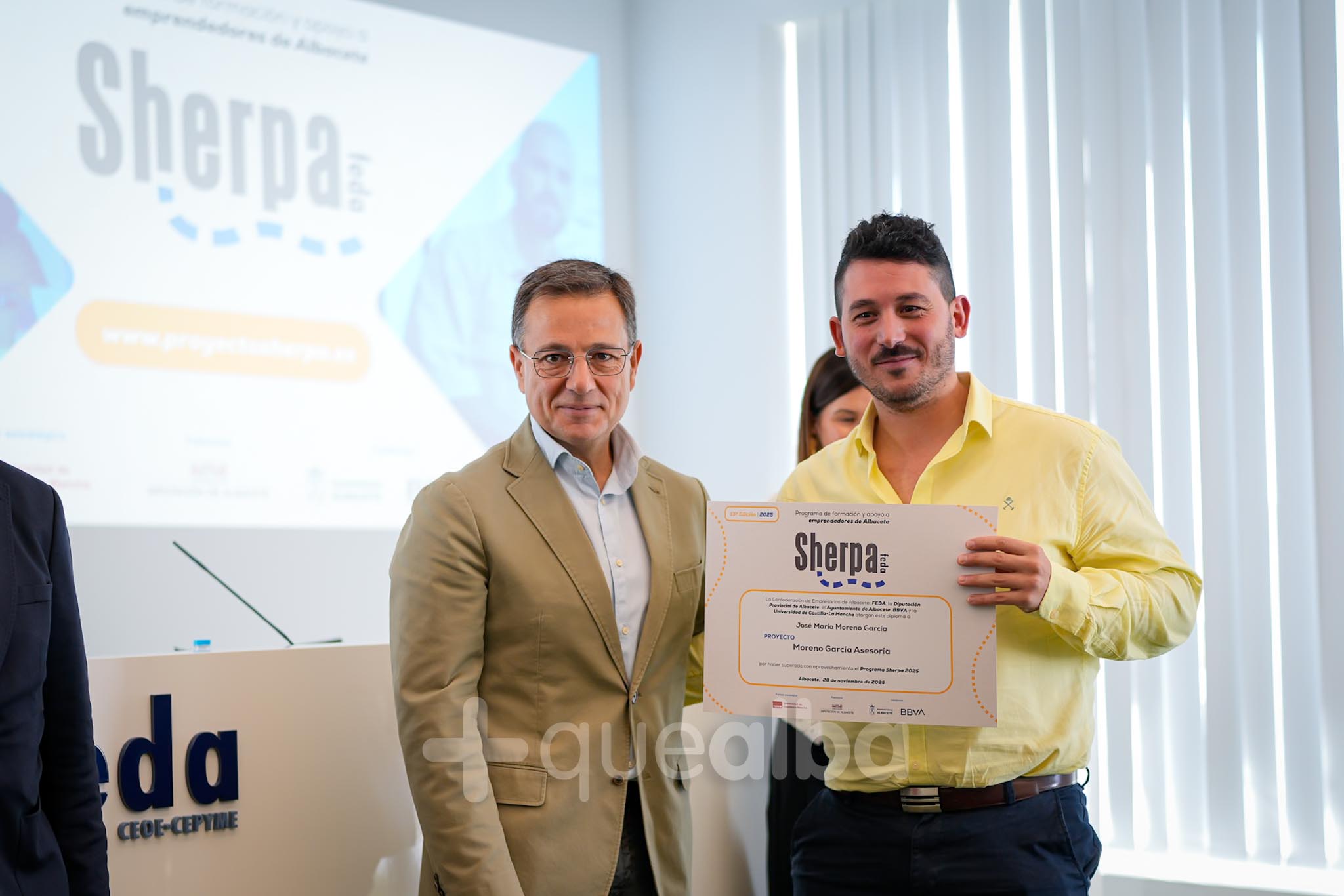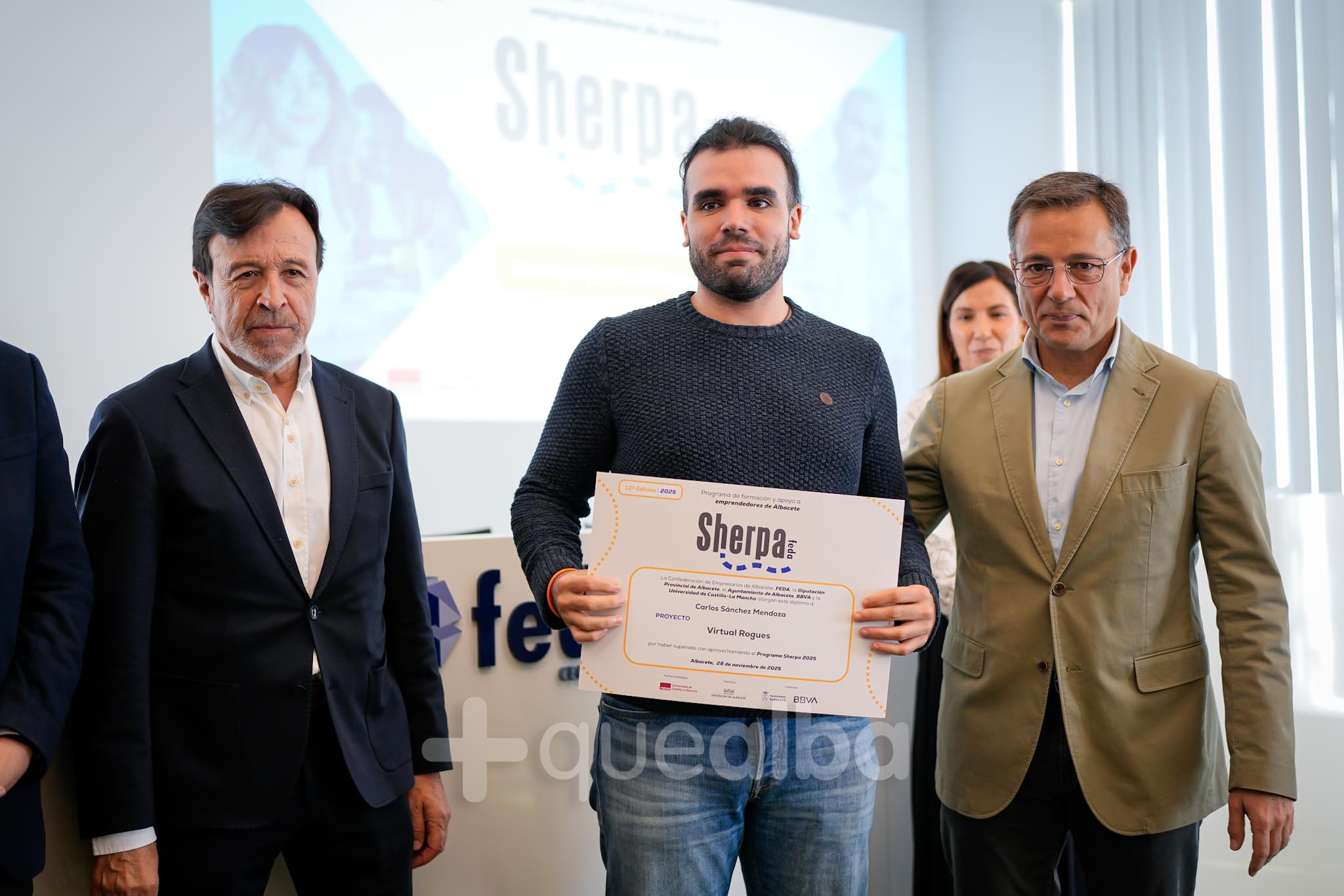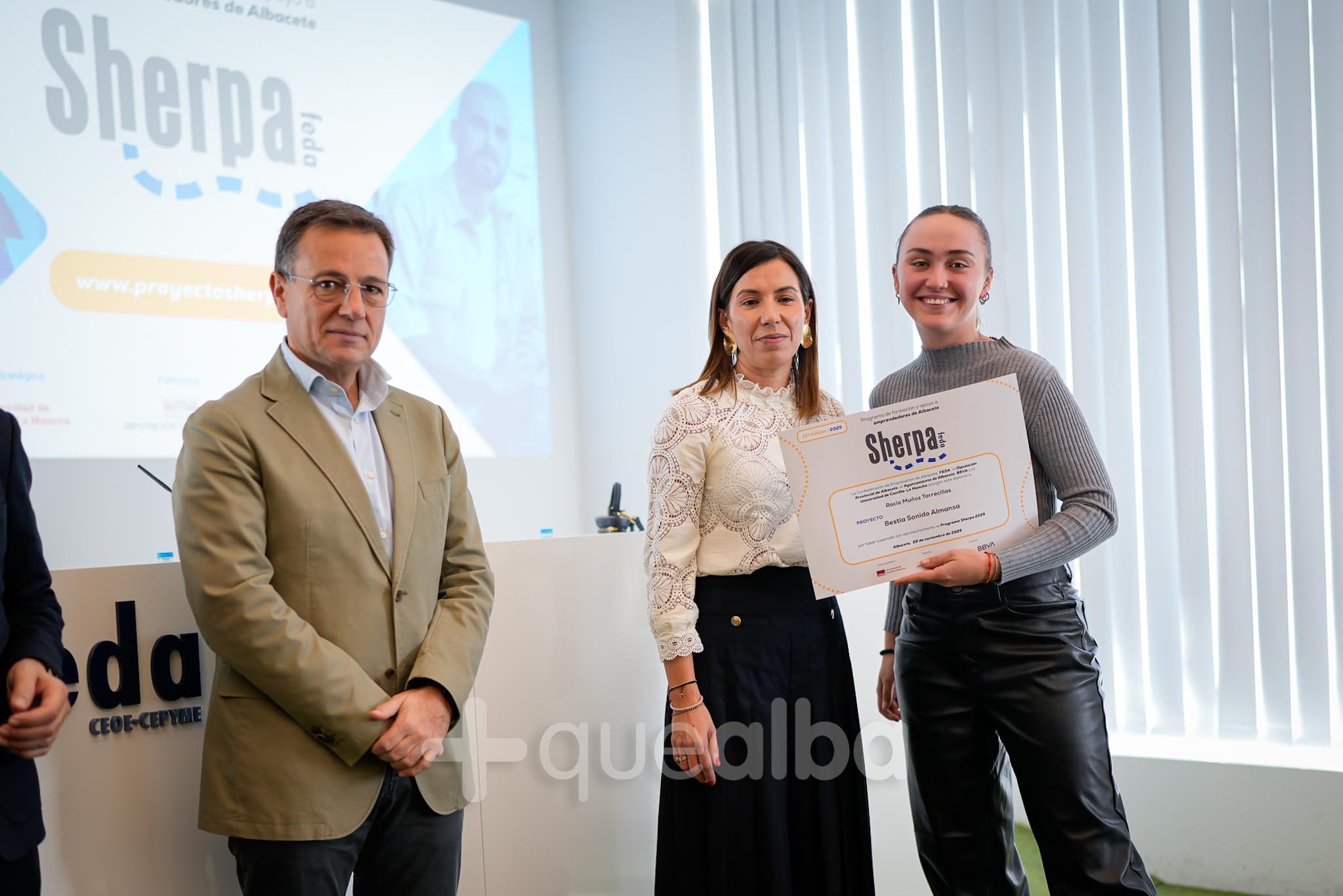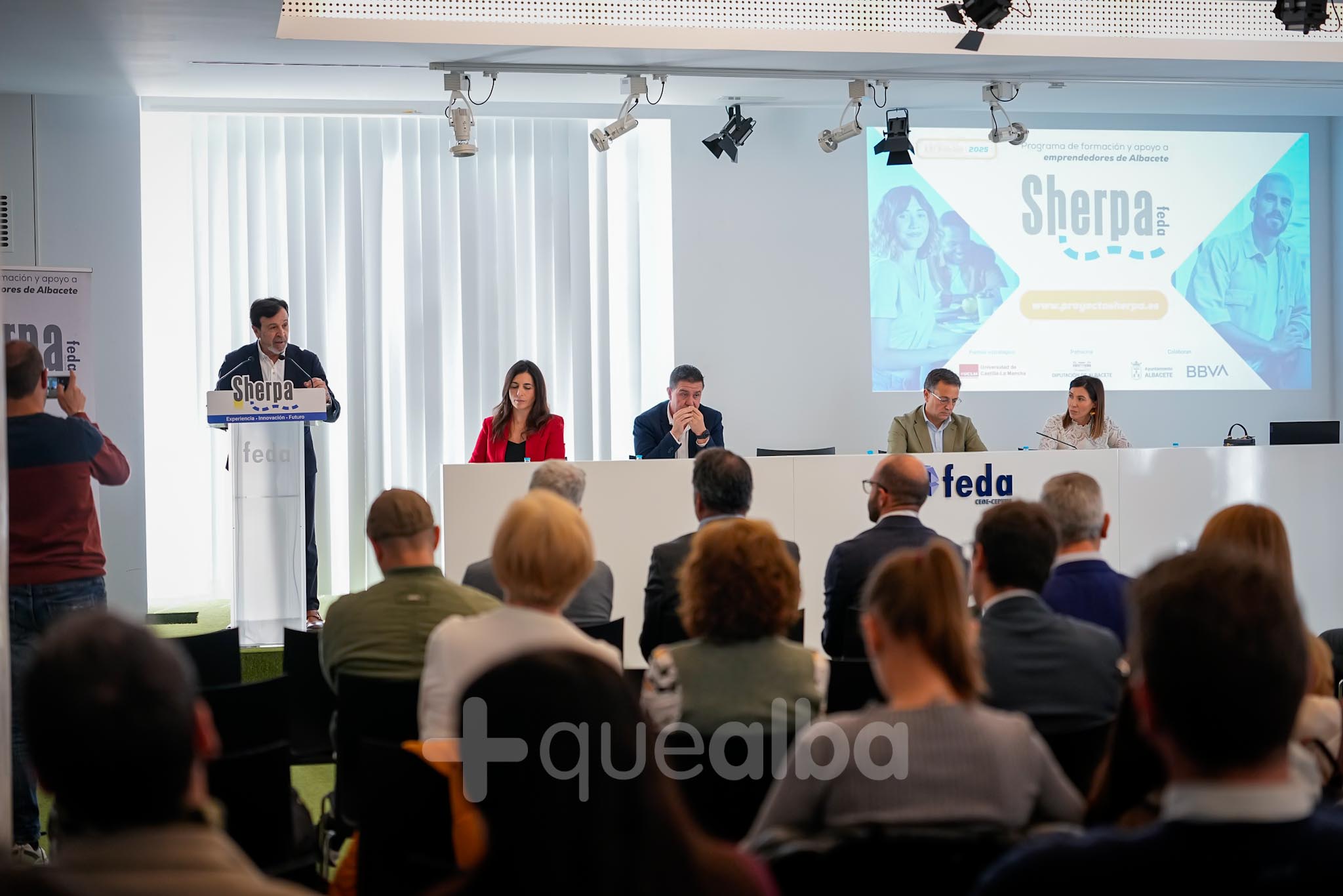 El presidente de FEDA, Artemio Pérez, daba la bienvenida al acto, en el que también han participado el alcalde de Albacete, Manuel Serrano; y el presidente de la Diputación, Santiago Cabañero. Pérez ha dado las gracias a las instituciones y entidades que siguen haciendo posible este programa. Ha destacado que los buenos resultados del Sherpa «son visibles» y ha abogado por convocar una nueva edición.