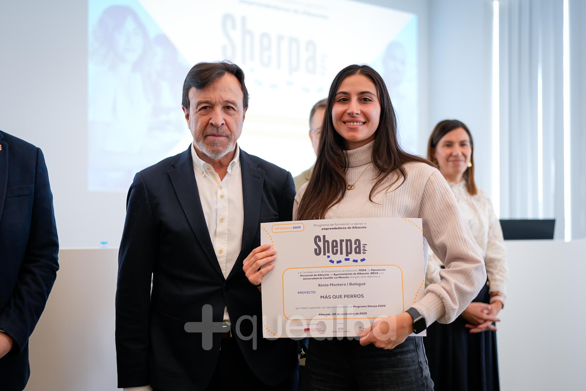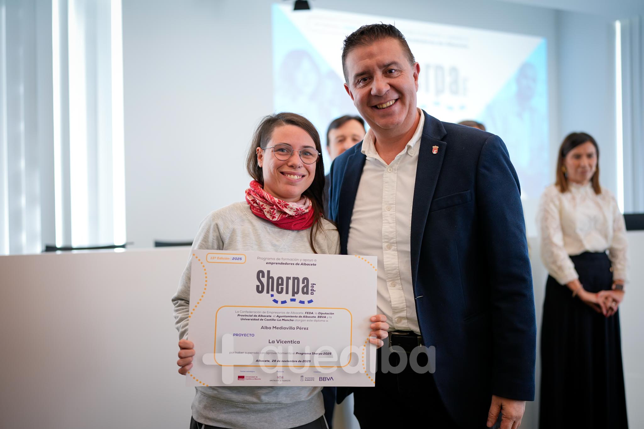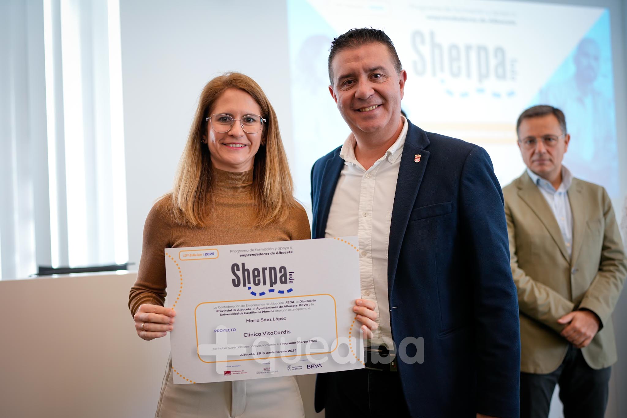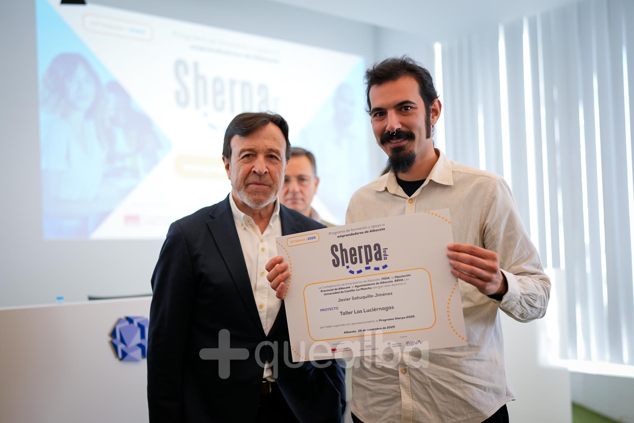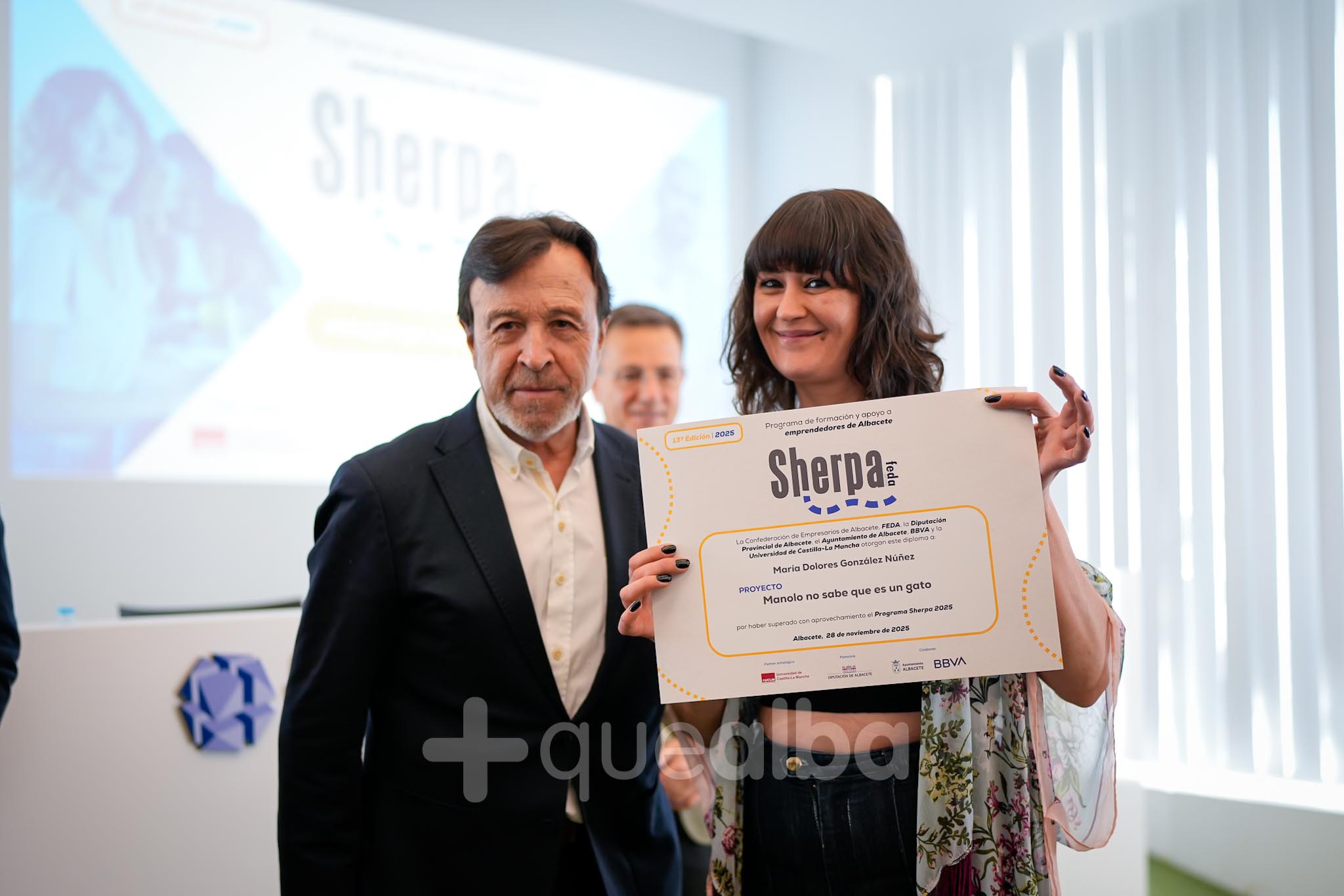 El presidente de FEDA, Artemio Pérez, daba la bienvenida al acto, en el que también han participado el alcalde de Albacete, Manuel Serrano; y el presidente de la Diputación, Santiago Cabañero. Pérez ha dado las gracias a las instituciones y entidades que siguen haciendo posible este programa. Ha destacado que los buenos resultados del Sherpa «son visibles» y ha abogado por convocar una nueva edición.