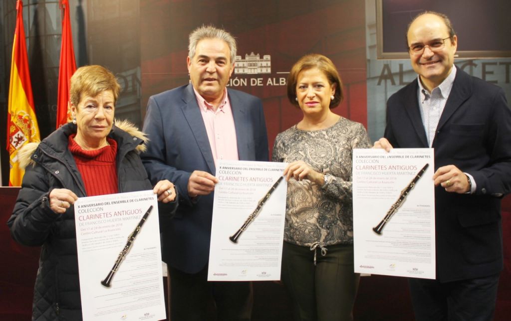 El programa completo de actividades ha sido presentado esta mañana por la directora del Real Conservatorio Profesional de Música y Danza de Albacete, Carmen Simón y por el secretario del centro, José Lozano, quienes han estado acompañados por el diputado provincial, Juan Gil y Milagros Huertas, hija del músico tobarreño, Francisco Huerta, quien ha cedido la colección privada de clarinetes de su padre para esta exposición.