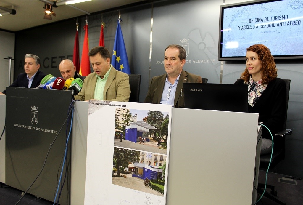El alcalde de Albacete ha explicado que junto al proyecto de acondicionamiento del refugio antiaéreo se procederá a la sustitución de la actual Oficina Municipal de Información Turística por una construcción más moderna, funcional e integrada en el entorno.