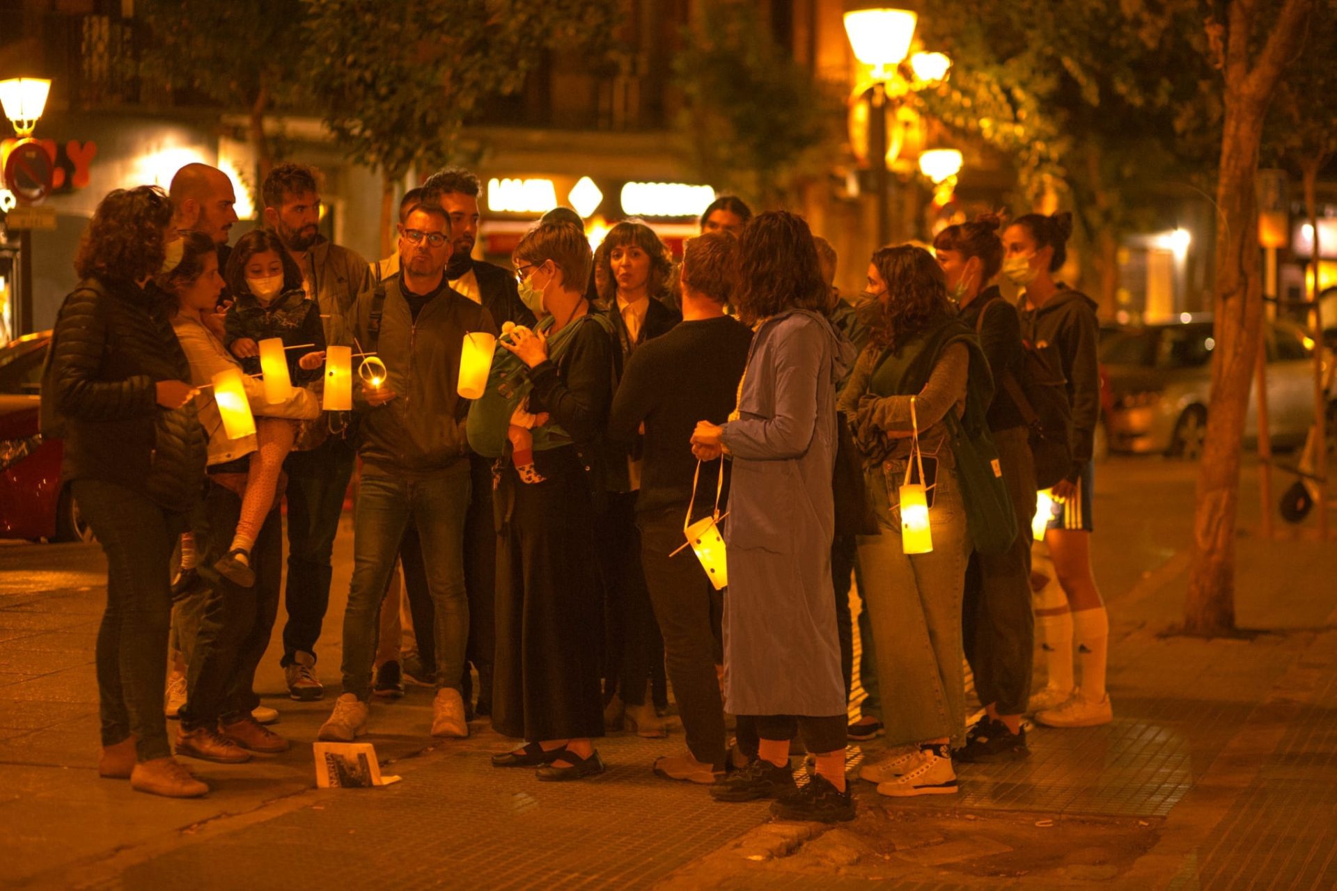 El paseo concluye con la creación de una instalación artística en una de las plazas del recorrido dejando una huella efímera de luz dentro de Albacete.