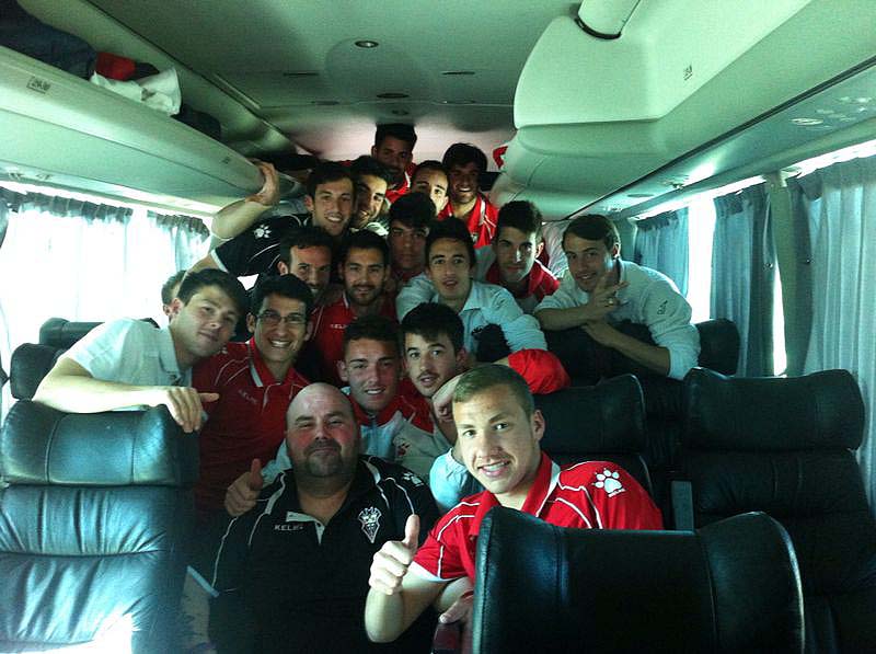 Desde el autobús de vuelta de Illescas, el portero del filial, Javi García, nos manda este «selfie» del Alba B que muestra la felicidad del equipo tras la importante victoria, con dos goles de Héctor.