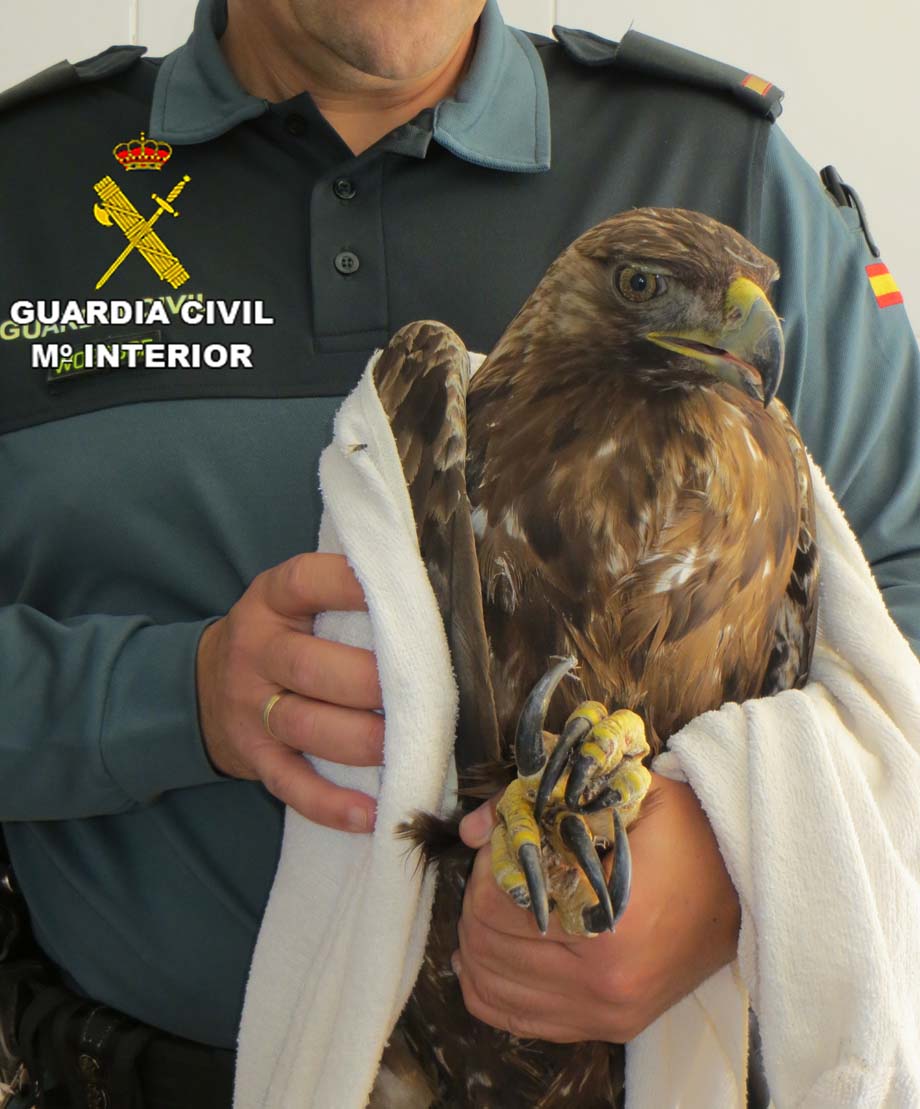 La estrecha colaboración existente entre los guardas y vigilantes de espacios cinegéticos y la Guardia Civil y una rápida actuación hicieron que la rapaz que será liberada en el medio natural una vez sane de sus heridas, consiguiera salvar su vida.