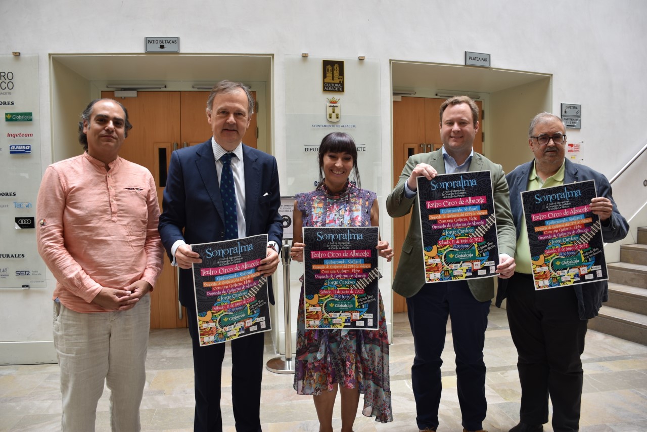 El Teatro Circo acoge la clausura del I Festival Internacional de Orquestas de Guitarras ‘SONORALMA, un “certamen único, que es pionero en España, al ser el primer festival exclusivamente de orquestas de guitarras que se celebra en nuestro país”, tal y como ha expuesto el vicealcalde y concejal de Cultura, Vicente Casañ, que ha comparecido en rueda de prensa junto a Olga Fernández, directora de la Orquesta de Guitarras de Albacete, agrupación musical que ha impulsado su celebración.