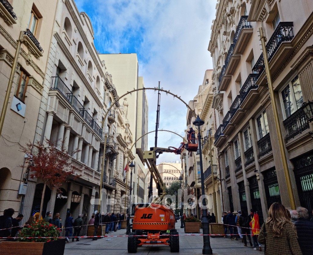 Este domingo ha comenzado la instalación del arco de las luces de Navidad de la calle Ancha de Albacete. Su encendido, según el pliego de condiciones, está previsto para los primeros días de diciembre.