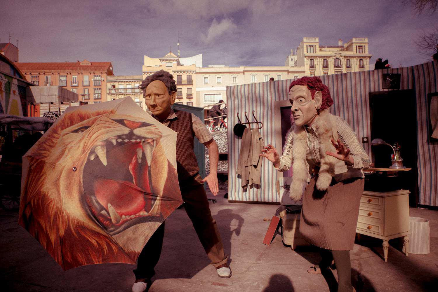 El espectáculo de Hotel la Rue es una coproducción de esta compañía y la oenegé Intermón Oxfam, donde utilizando la técnica de máscaras de Jacques Lecoq, -máscaras neutras, sin expresión concreta-, la antropología y la investigación sobre lo cotidiano, se ofrece una creación teatral que invita a la reflexión.