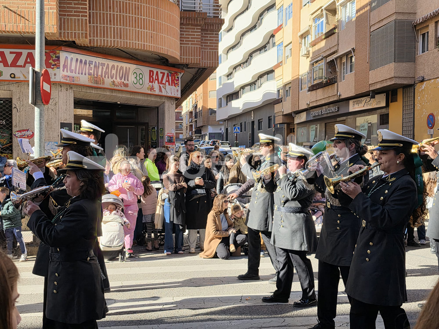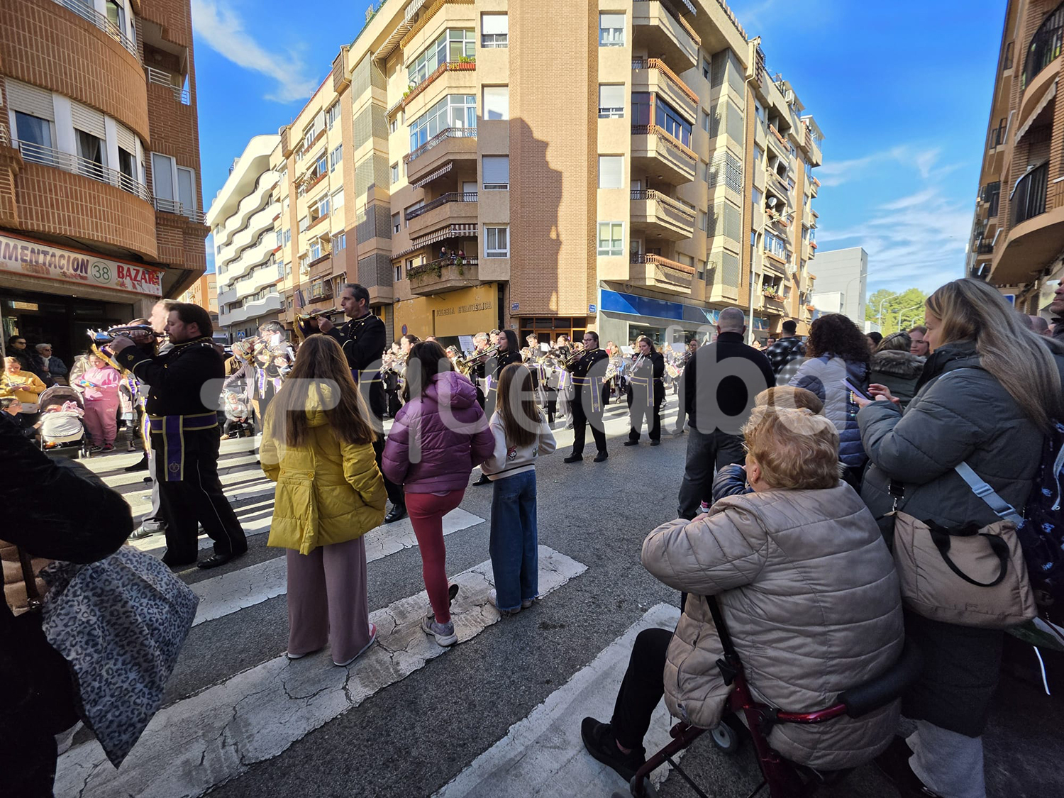 La procesión ha partido un año más desde la capilla de Nuestra Señora de las Angustias hasta el Asilo de San Antón, donde ha tenido lugar una convivencia intergeneracional entre las personas mayores residentes y nazarenos que ha finalizado con la interpretación de la Marcha Real.
