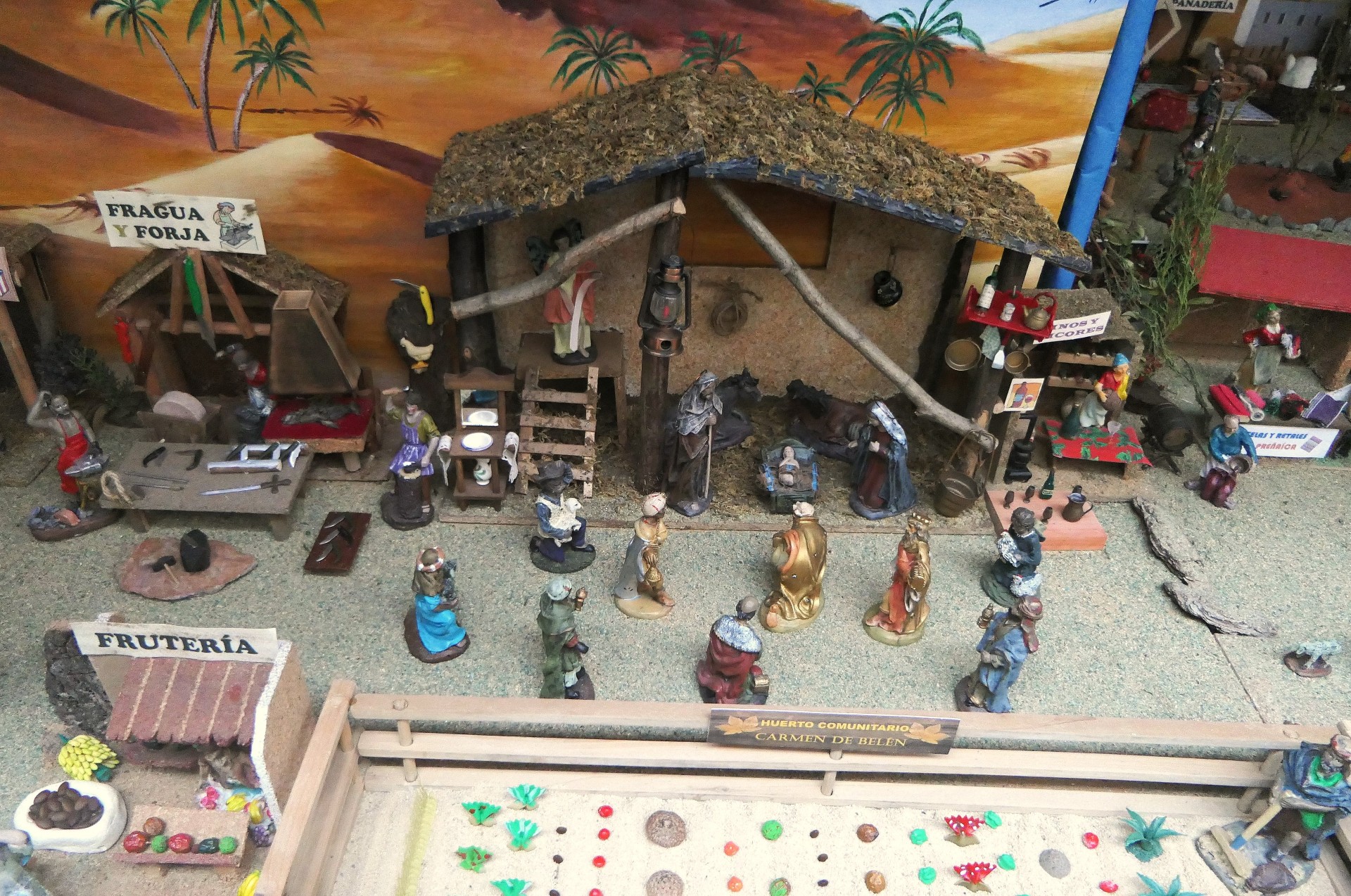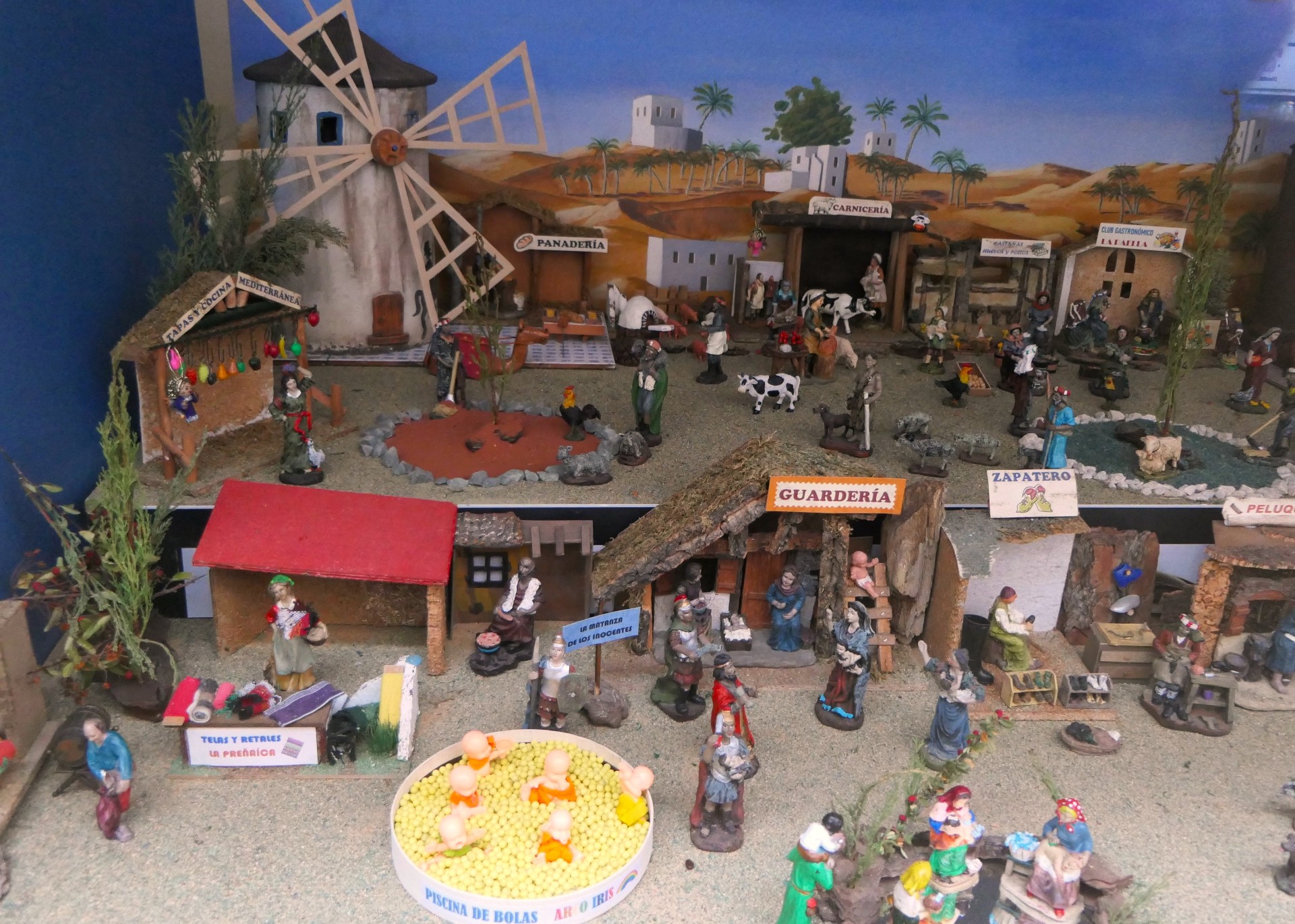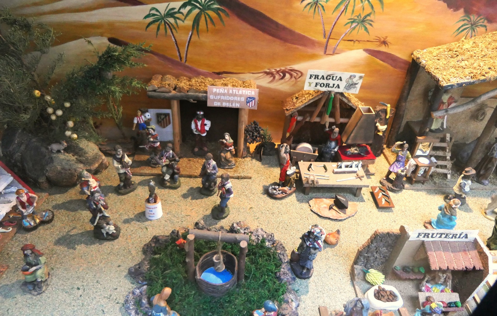 Los escenarios no olvidan el Nacimiento pero también recogen otros como la Alfarería, Panadería, Carnicería, Cuchillería, Frutería, Guardería, Fragua, Quiosco de prensa, Zapatero y la tradicional Peña Atlética «Sufridores de Belén» entre muchos otros.