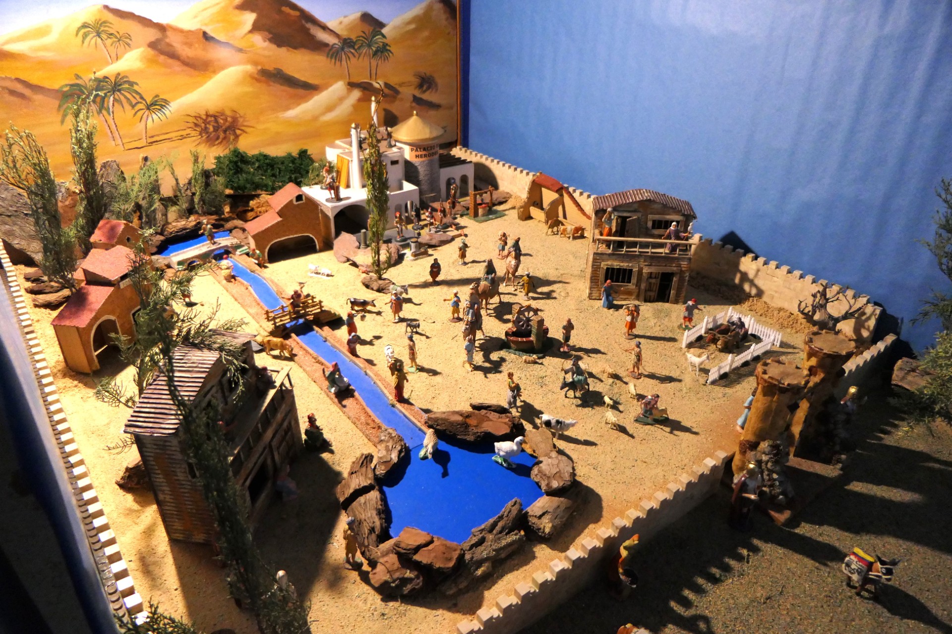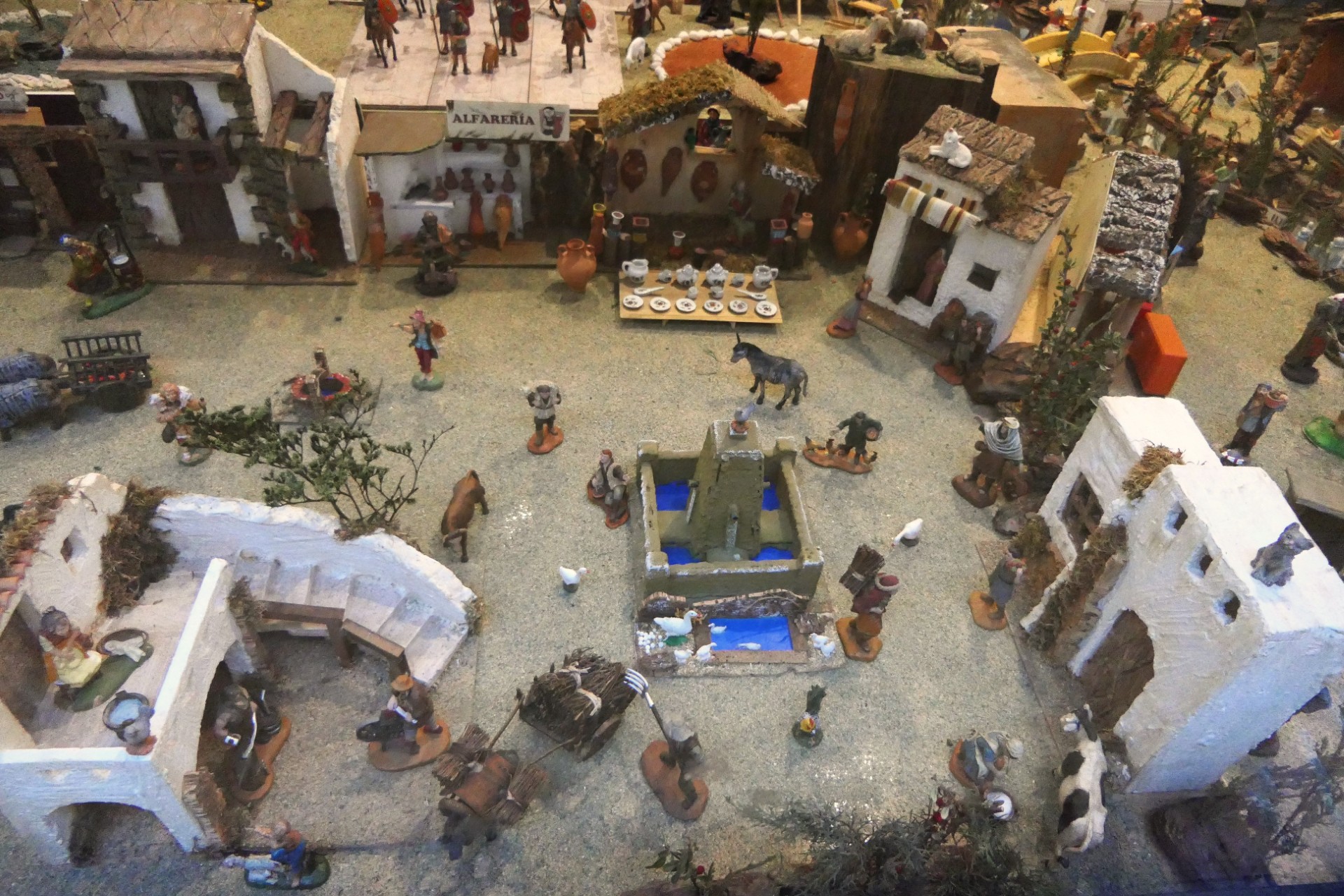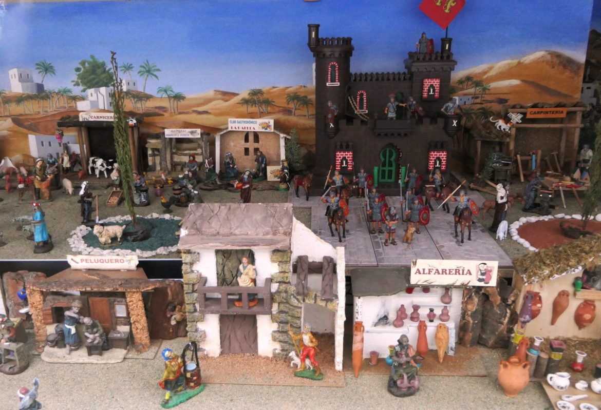 Los escenarios no olvidan el Nacimiento pero también recogen otros como la Alfarería, Panadería, Carnicería, Cuchillería, Frutería, Guardería, Fragua, Quiosco de prensa, Zapatero y la tradicional Peña Atlética «Sufridores de Belén» entre muchos otros.