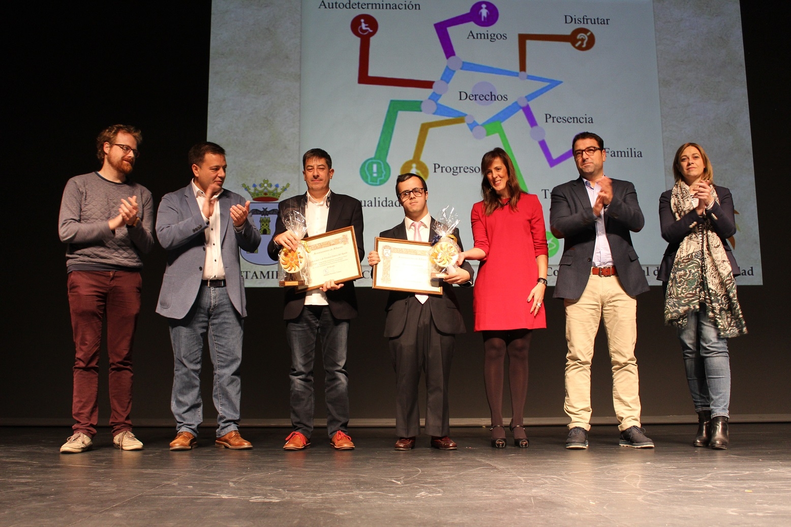 Manuel Serrano ha felicitado a los homenajeados en este acto, escogidos por el Consejo Municipal de Personas con Discapacidad, destacando la brillante trayectoria deportiva del nadador del club ‘Adapei’ de Asprona, Eloy Molina, así como sus importantes triunfos conseguidos en el Campeonato de Europa celebrado en París, donde además de proclamarse campeón de Europa en la final de 50 metros mariposa, batió un récord mundial con un tiempo de 32:77 segundos.