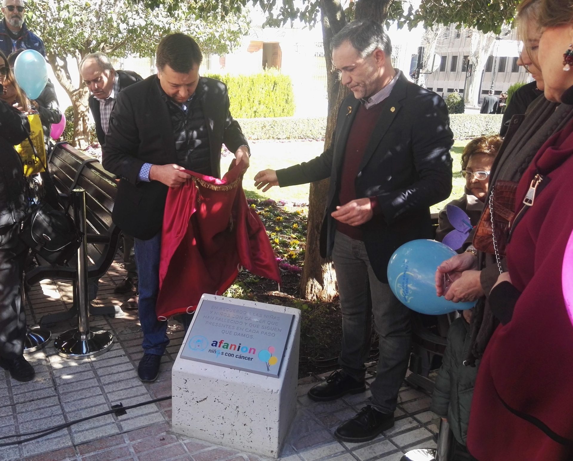 La Asociación de Familias de Niños con Cáncer de Castilla-La Mancha (AFANION) ha celebrado este sábado, 16 de febrero, un sencillo y emotivo homenaje a los niños y niñas fallecidos como consecuencia del cáncer infantil. En Albacete, ciudad en la que se encuentra la sede regional de AFANION, se ha llevado a cabo este acto en el que se ha descubierto una placa en la Plaza del Altozano. En la inscripción de la misma se puede leer: “En recuerdo a las niñas y niños con cáncer que han fallecido y que siguen presente en cada paso que damos”.