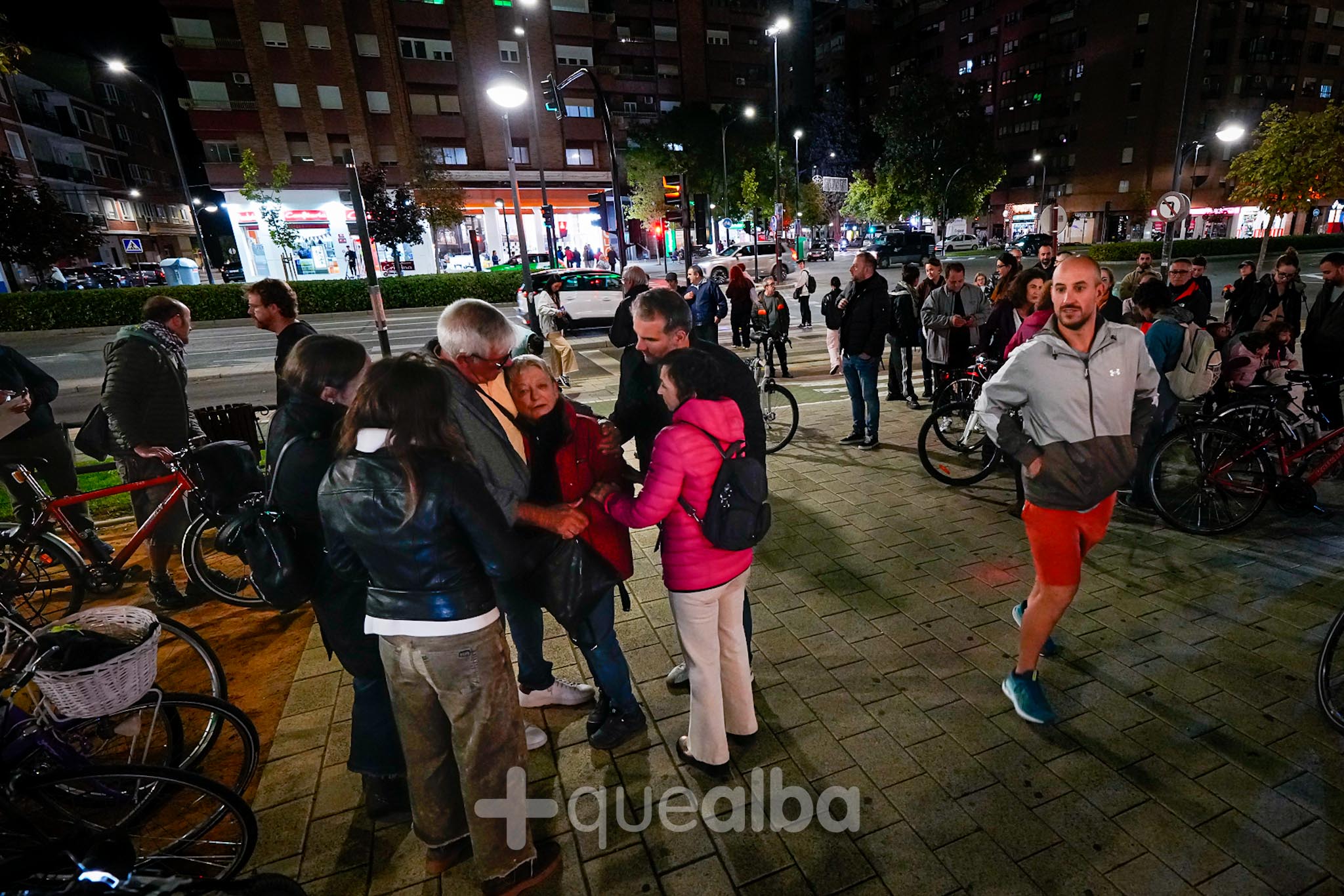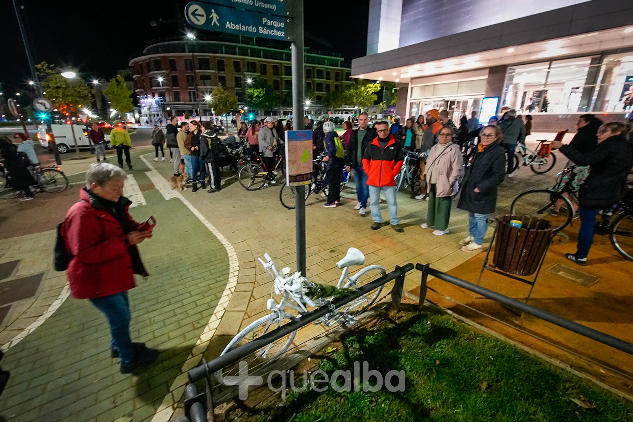 Decenas de vecinos de Albacete, principalmente usuarios de bicicletas, se han dado cita este jueves en el lugar donde la semana pasada falleció una ciclista, a la que golpeó un coche mientras iba por el carrilbici y el turismo salía del aparcamiento de los grandes almacenes, en la Avenida de España.