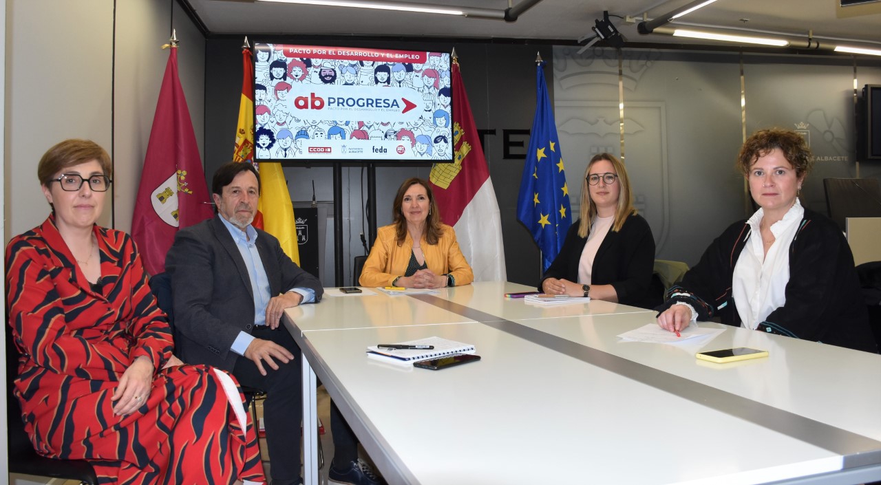 El Ayuntamiento de Albacete ha acogido esta tarde una nueva reunión del Pacto por el Desarrollo y el Empleo, Albacete Progresa, con la constitución de la mesa que conforma el Eje 3, Economía del conocimiento y digitalización y Presupuestos, que cuenta con la concejala de Economía y Hacienda, Recursos Humanos, Interior, Seguridad y Patrimonio, María José López, como coordinadora. Por parte de los agentes sociales, a esta sesión han asistido el presidente de FEDA, Artemio Pérez; mientras que Laura Martín Navarro ha asistido en representación de UGT y Esther Ruiz lo ha hecho por CCOO.