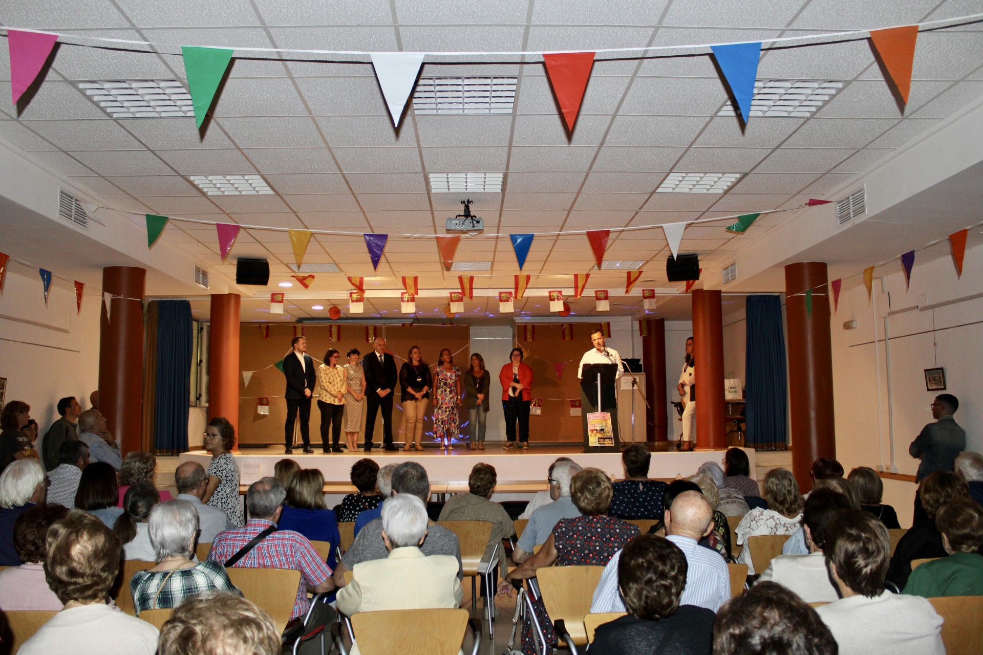 El alcalde Manuel Serrano, acompañado de otros concejales de la Corporación, ha participado en el inicio de las fiestas del Barrio del Pilar, que han comenzado con el pregón a cargo de la vicepresidenta de la Asociación de Vecinos, Carmen María Hurtado Herreros, en el Centro Sociocultural José Oliva.