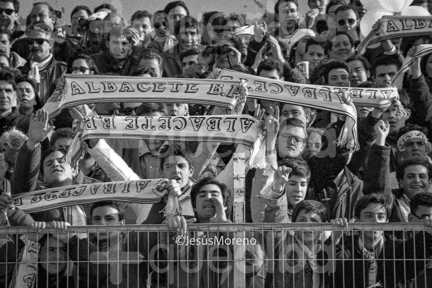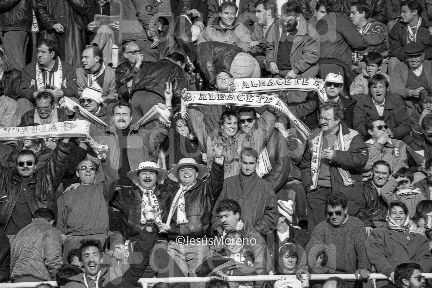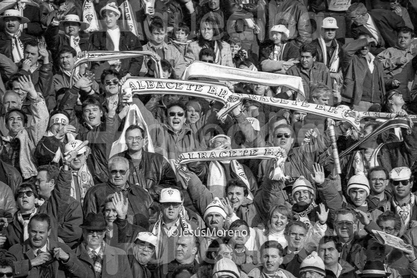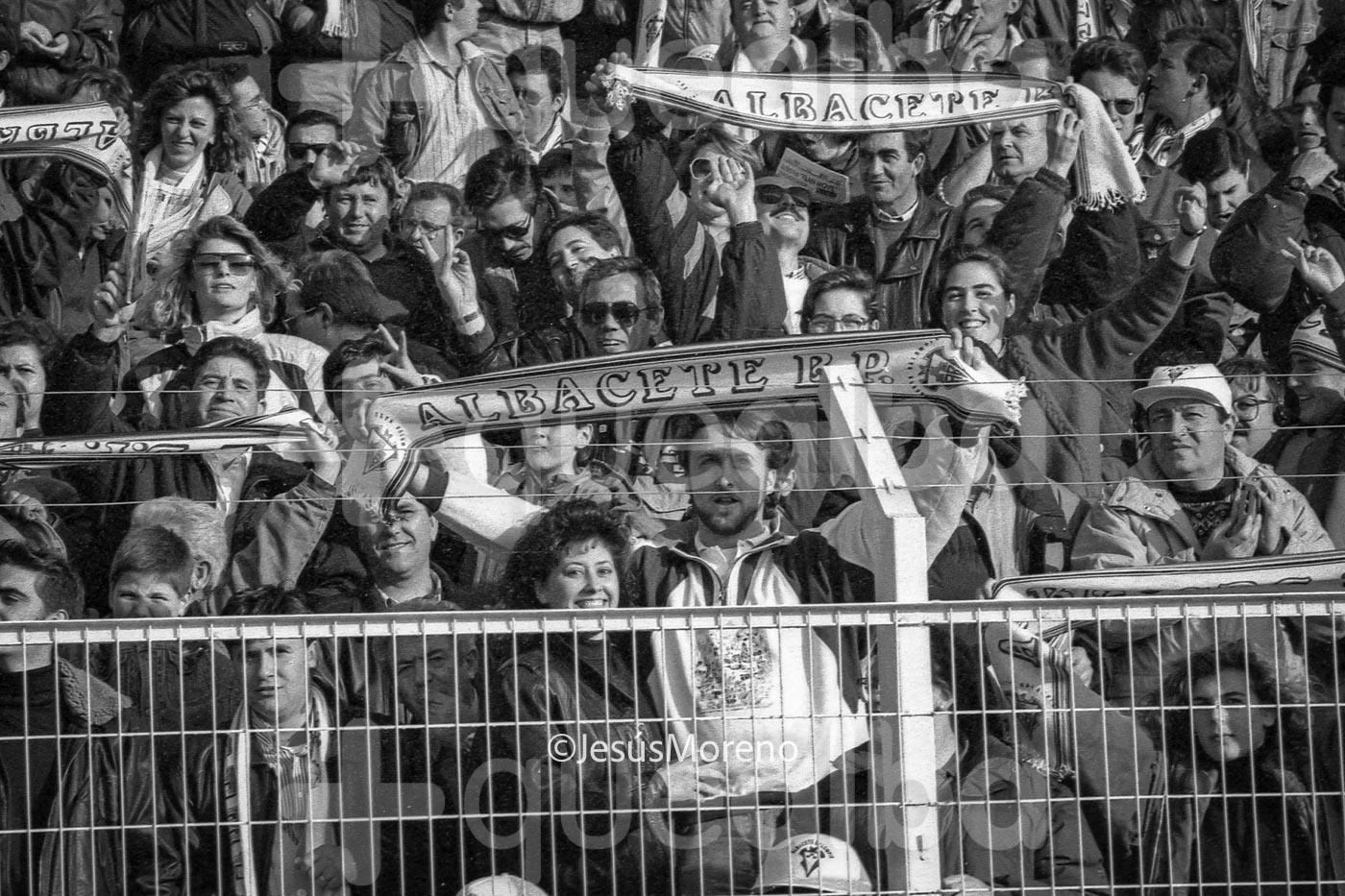 En las horas previas al partido entre los dos equipos blancos, también se habló mucho de dinero. “Los no socios pagarán entre 4.000 y 18.000 pesetas por ver el Albacete-Madrid”, publicaba La Tribuna. Periódico en el que difundió Jesús Moreno sus magníficas fotografías del encuentro. Os compartimos algunas de estas imágenes. Instantáneas que reflejan la pasión futbolera que despertaban jugadores como Conejo, Coco, Zalazar, Catali, Antonio, Buyo, Hagi, Míchel o Butragueño.
